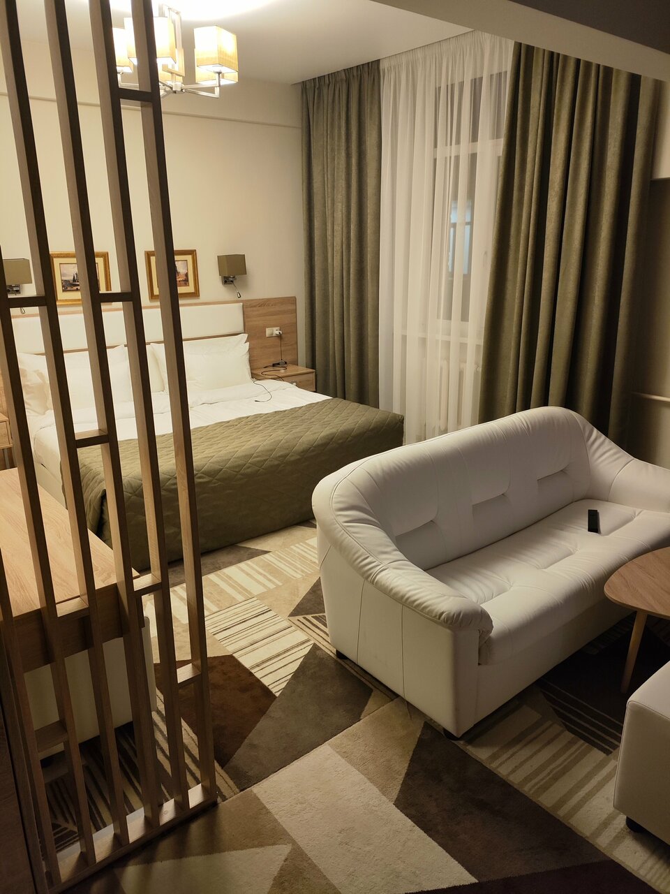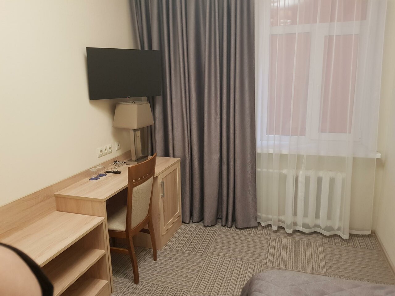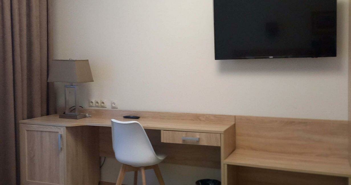 Очень бюджетный ремонт и оснащение номера, но и цена невысокая. Батареи жарят, регулировки нет. Пока новое можно пользоваться. Работа кафе внизу не налажена, позавтракать не получилось, там и кассир и повар и официант походу один человек.
