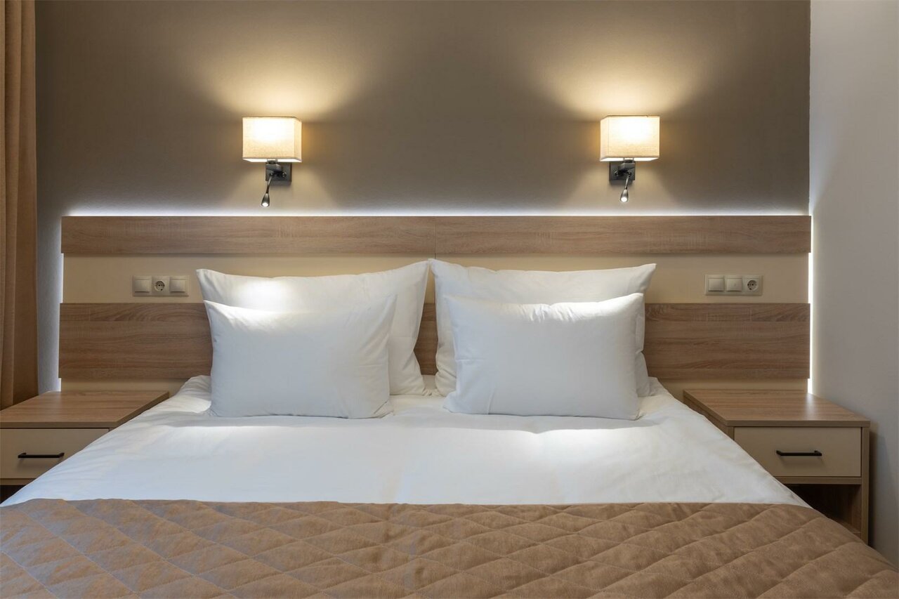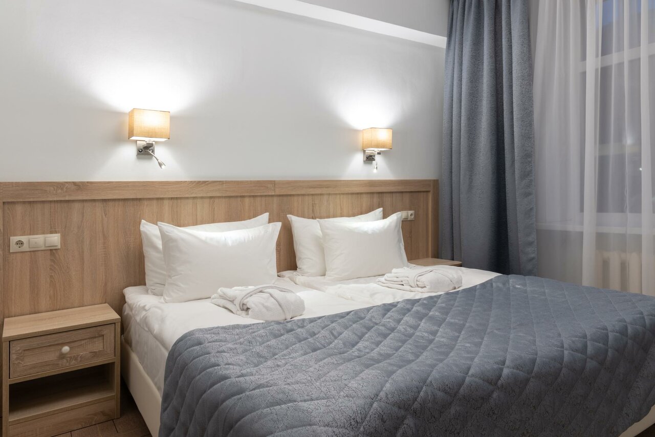 Дважды останавливались с семьей в семейном двухкомнатном номере, всё устраивало. Номер большой, чистый, хорошее постельное белье, очень удобно, есть что есть микроволновка. Хотела забронировать в марте, но стоимость стала очень высокой из-за включённого завтрака, без него возможности забронировать не нашла. Выбрали другую гостиницу. Пожелание к руководству вернуть возможность бронирования с завтраком/без завтрака на выбор.
