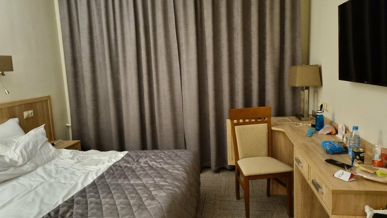 Отдыхали с семьей 4 человека, заселили быстро, номер двухкомнаиный огррмный, в номере микроволновка, чайная станция, посуда,телевизор,холодильник,белье, мебель, все новое, убирали каждий день. Спасибо, приедем еще.