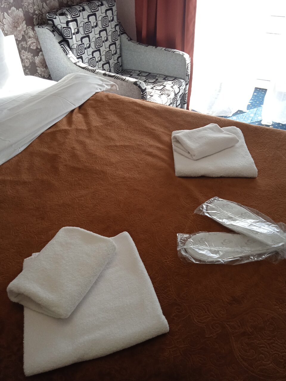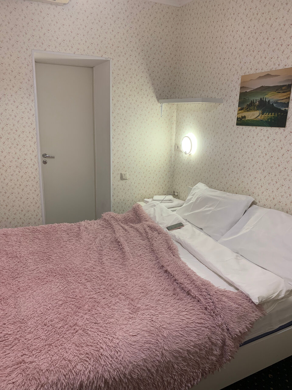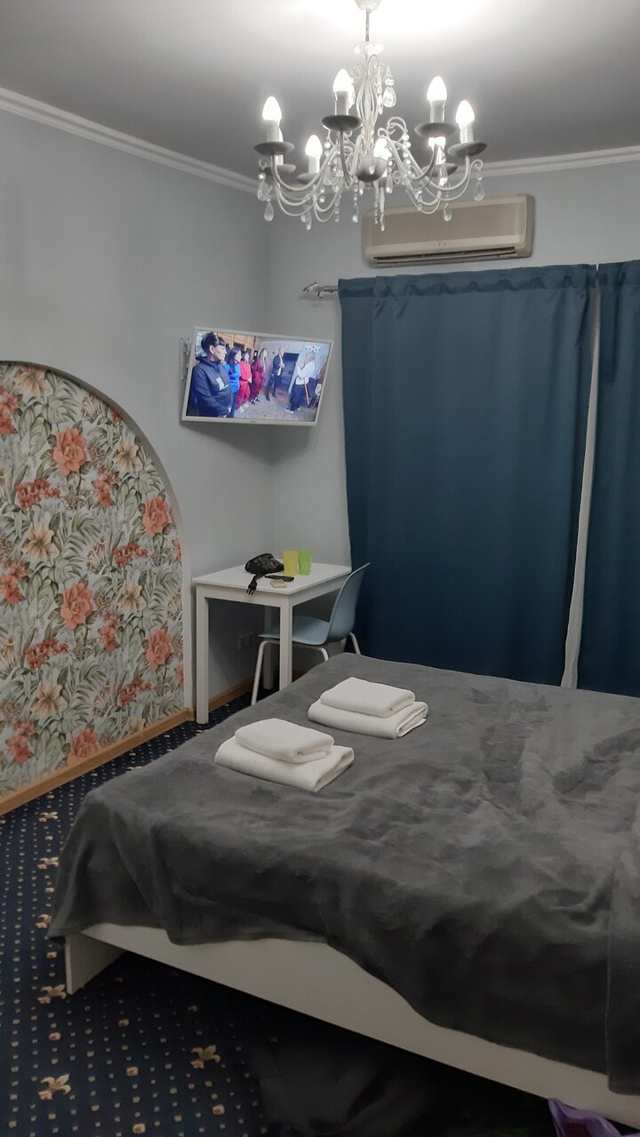 Бронировали на сайте, оплатили сразу. Нажимал при оплате двухместный с одной кроватью, оплатился в итоге с двумя, на месте уже поменяли номер на двухместный с одной кроватью. Расположение отеля хорошее. Чистота на 4, подвёл ковролин(не очень убран). Полотенца предоставляют-тоже плюс.Персонал хороший. Вообще суда приехали бы ещё. Нам понравилось.