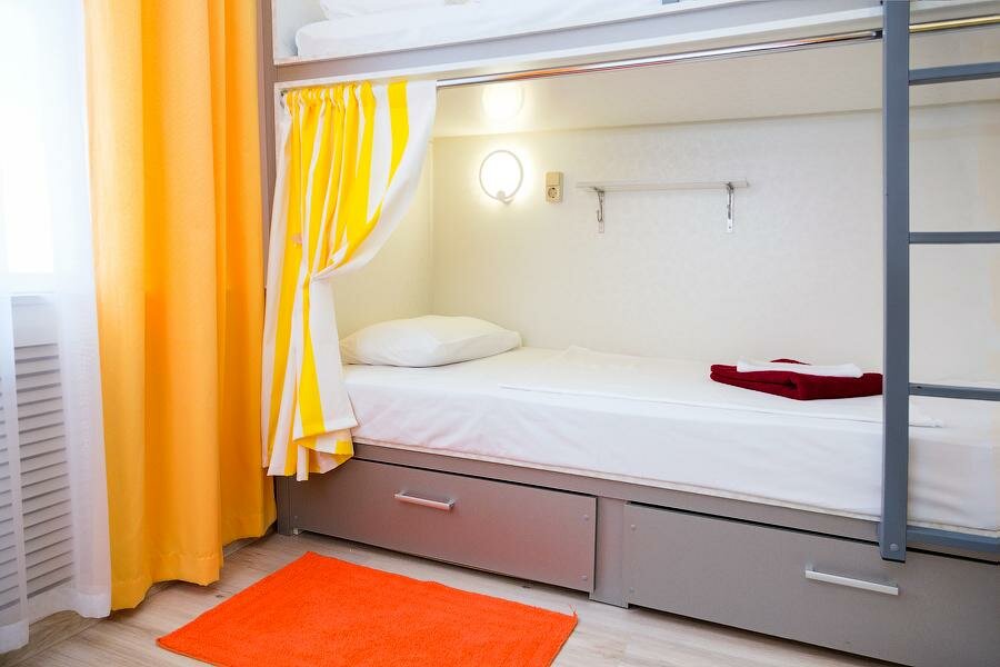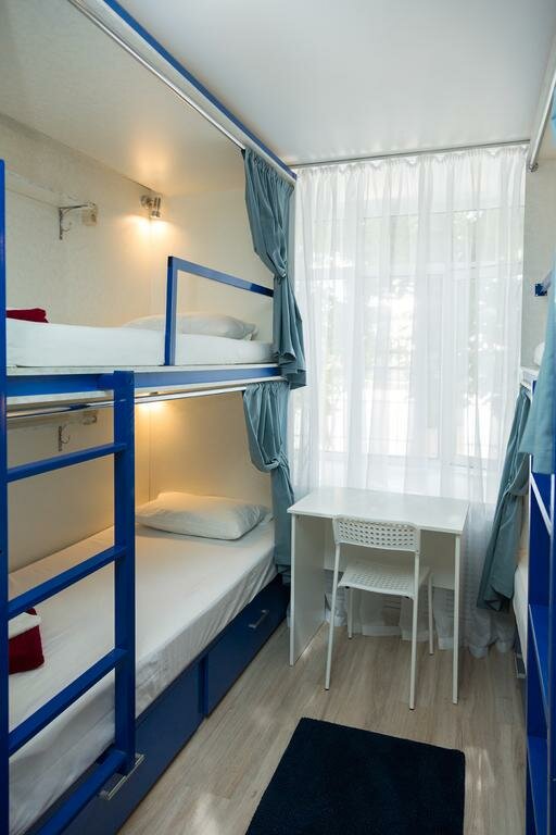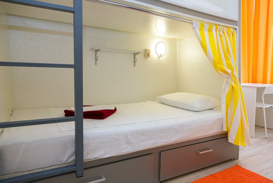 Ортопедические матрасы, место для зарядки, светильник-ночник, плотная шторка, телевизорУборка горничным персоналом ежедневно. Общие душевые и сан узлы (М/Ж/общ.)Кухня-столовая с необходимым для приготовления еды инвентарём.WI-Fi, Chill-зона.