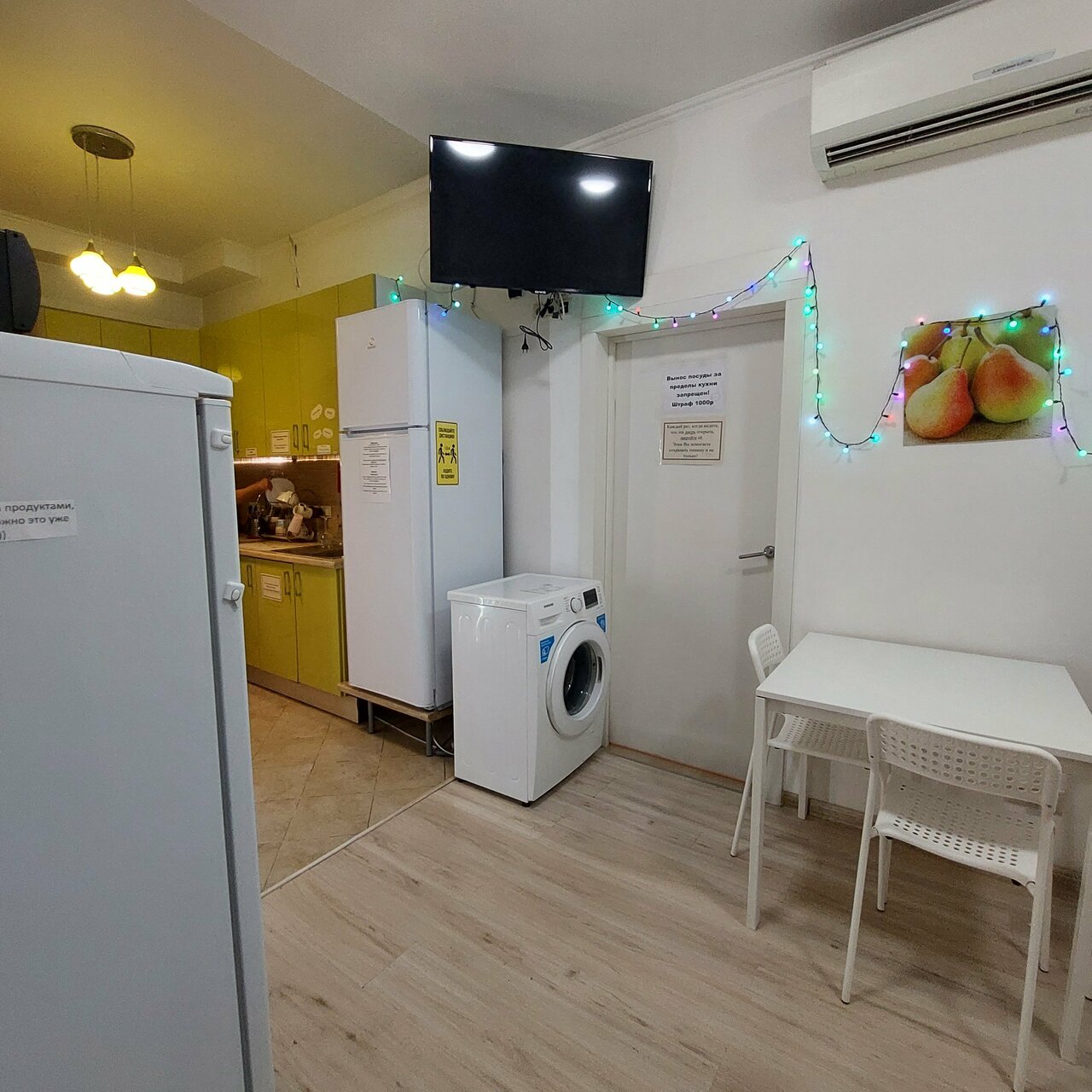 - Наличие кухни, холодильников, фена, утюга, полотенец.