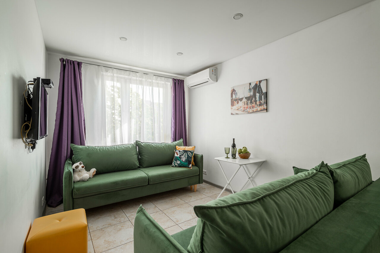 Апвртаменты с 1 спальней, гостиной и кухонной зоной. Размещение до 6 человек. Стоимость двухместного размещения 8000/сутки . 3х местное 9000/сутки, 4х местное 10000/сутки.