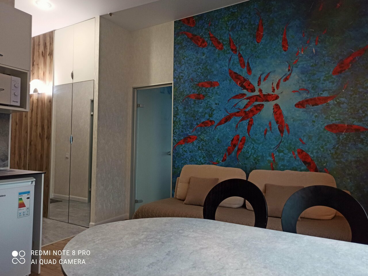 Останавливалась здесь в конце января.Чудесное местоКомната большая!Есть вся посуда(кстати тоже очень милая и в цвет комнаты-синяя,даже столовые приборы!)Уютно,светло и очень чисто!Хозяйка вежливая и приветливая.Спасибо!