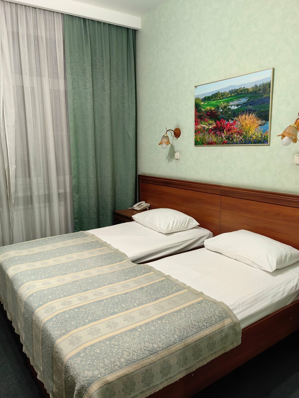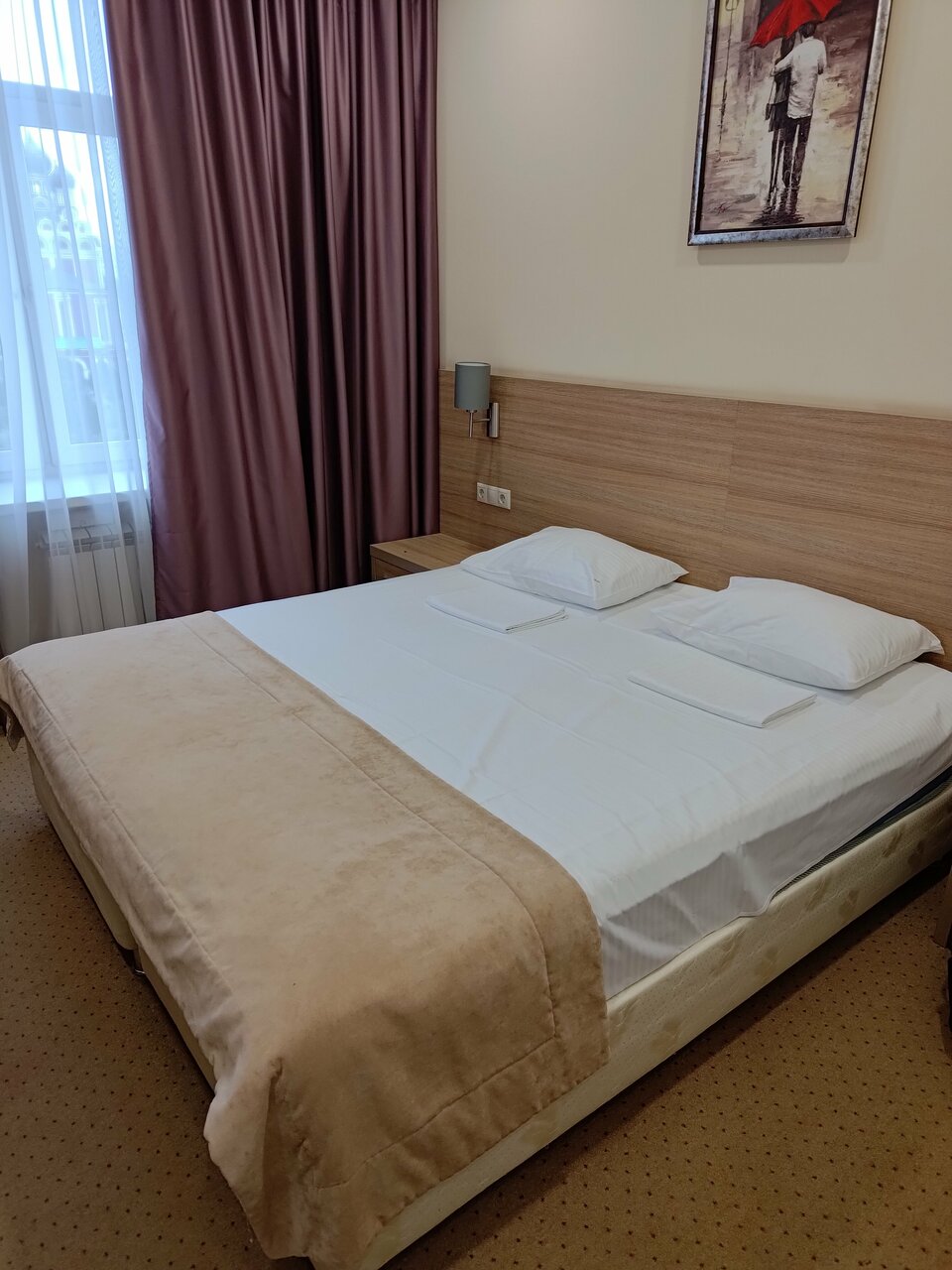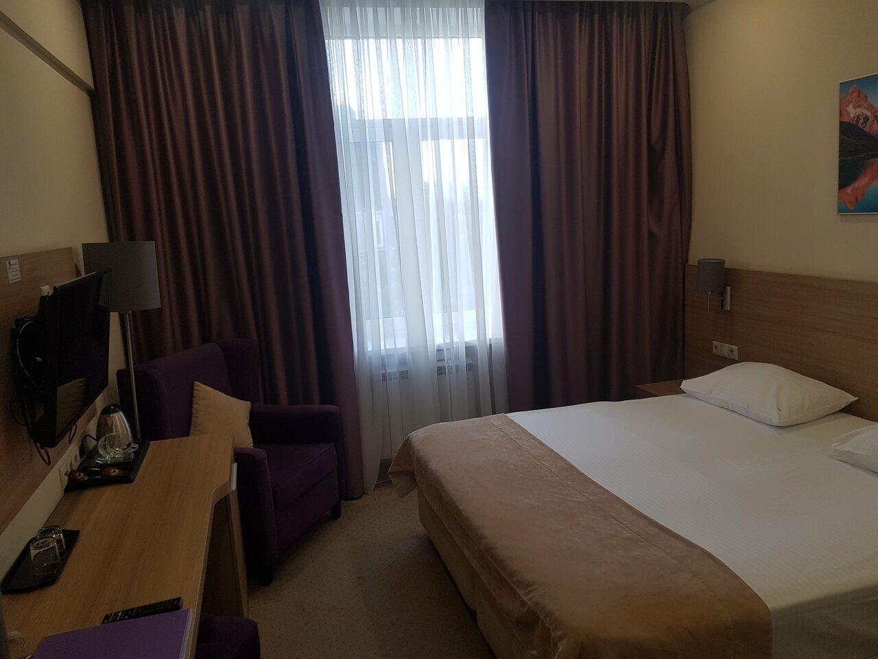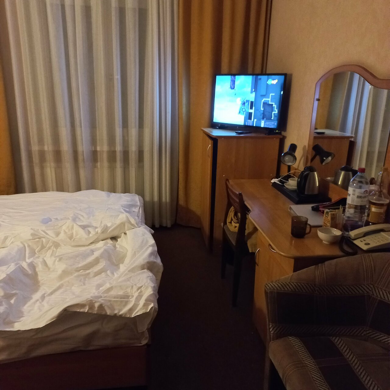 Хорошая гостиница, тепло, удачное местоположение, даже кладбище из окон не особо огорчает). Минус звезда за номер, все таки грязновато. Окна грязные, стаканы в номере тоже сомнительной чистоты, мебель в пятнах, тюль совсем несвежий, ванная комната тоже не впечатляет. Не знаю, что убирают во время ежедневной уборки, такое ощущение, что только мусор, хотя, возможно, зависит от персонала. Завтраки прекрасные, в гостиницах это очень радует, потому как с утра идти куда то искать где поесть, ну прям как бээ такоээ. В общем, отельчик, если просто переночевать прям отлично для такой стоимости
