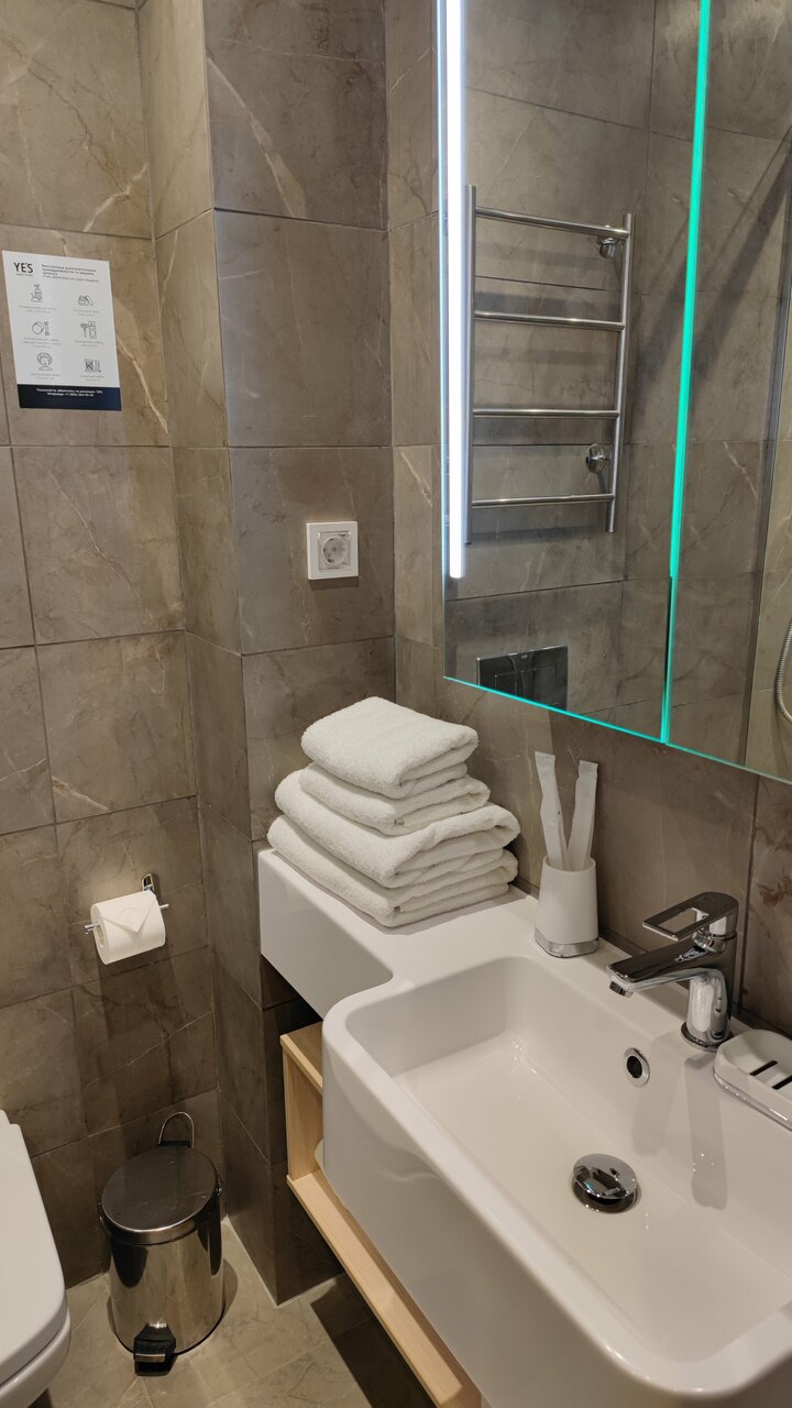 Удобства: — Номера с кондиционером, кухонным уголком, санузлом, Wi-Fi, телевизором, холодильником и чайником. — Тренажёрный зал, парковка, банкомат, коворкинг, терраса, бар. — Допускается проживание с животными (платно). — Детские кроватки (бесплатно для детей до 3 лет). — Круглосуточная стойка регистрации, камера хранения, платный трансфер.