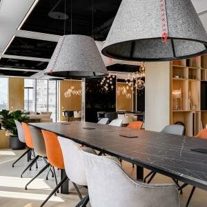 - Лобби на 13 этаже с выходом на крышу и коворкингом.