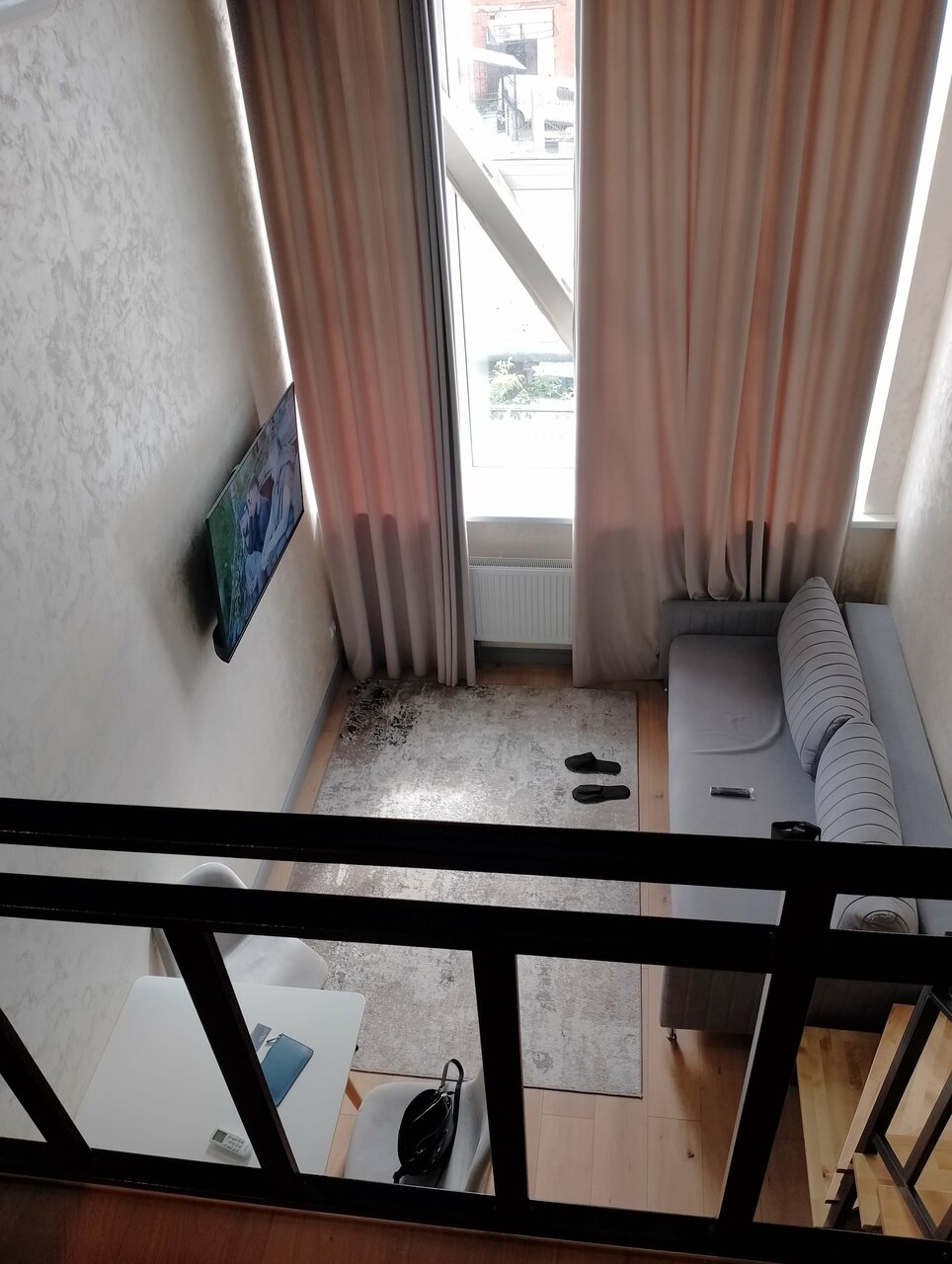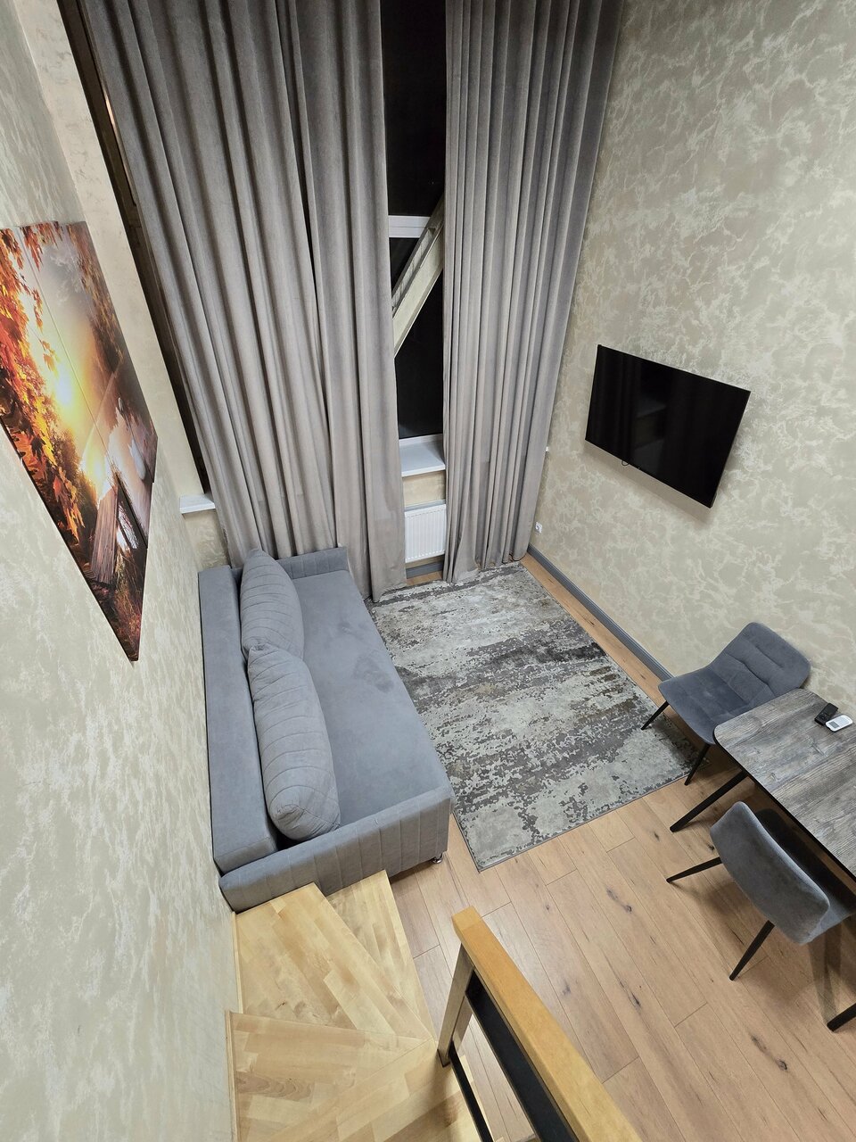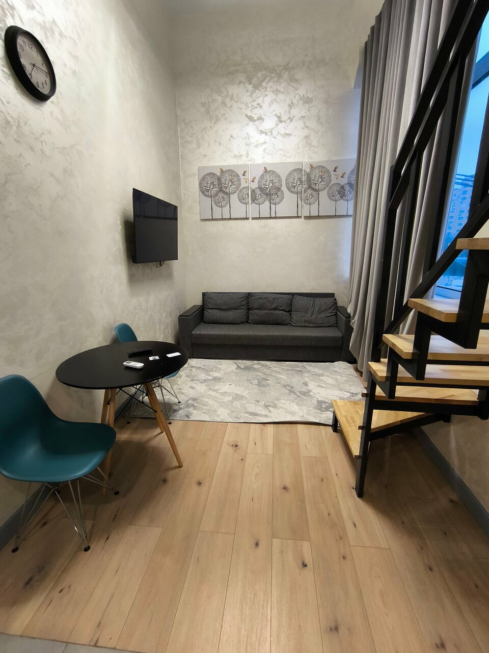 Двухуровневые апартаменты, где вы получаете высокое качество, комфорт и сервис.В наших номерах два этажа, каждый со своими особенностями.На первом этаже гостиная, мини-кухня, ванная комната.На втором этаже находятся спальня и рабочая зона.