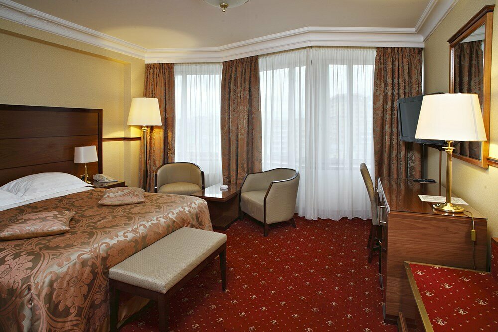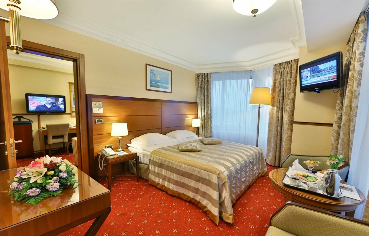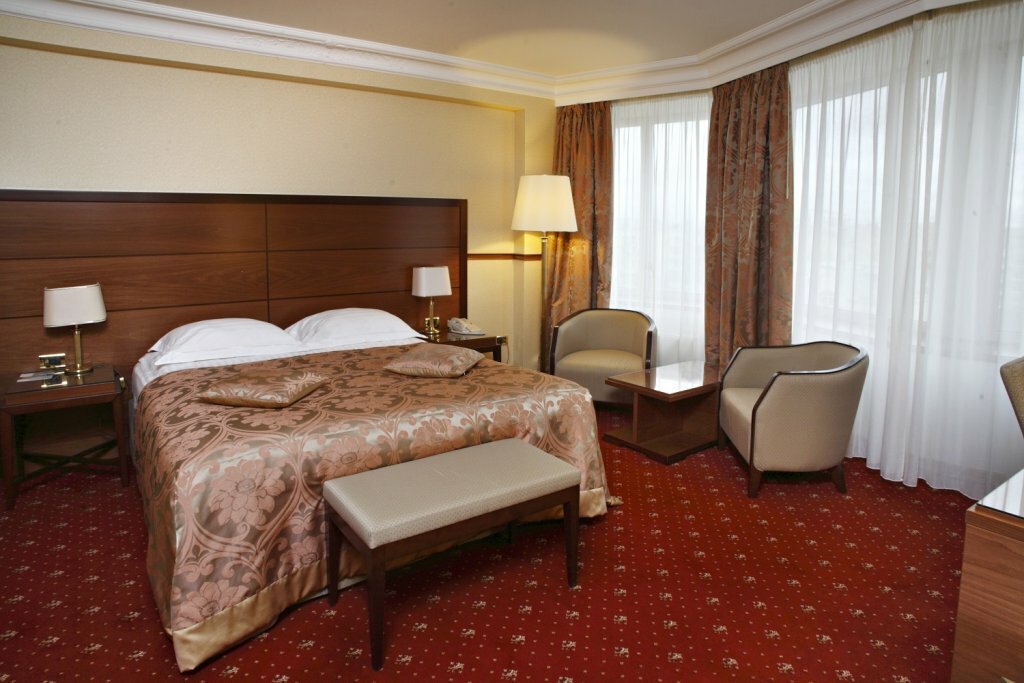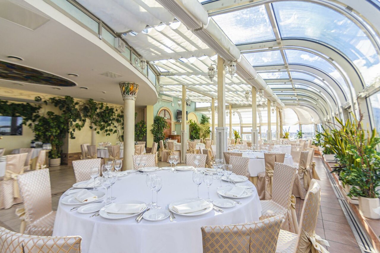 Услуги: — 2 ресторана (включая «Панораму»), бар, кафе, доставка еды в номер — Конгресс-центр, бизнес-залы, конференц-залы — Фитнес-центр, салон красоты, химчистка — Трансфер (аэропорт/вокзал), парковка, гараж — Проживание с детьми (люльки, меню) и животными (платно) — Круглосуточная стойка регистрации, консьерж-сервис