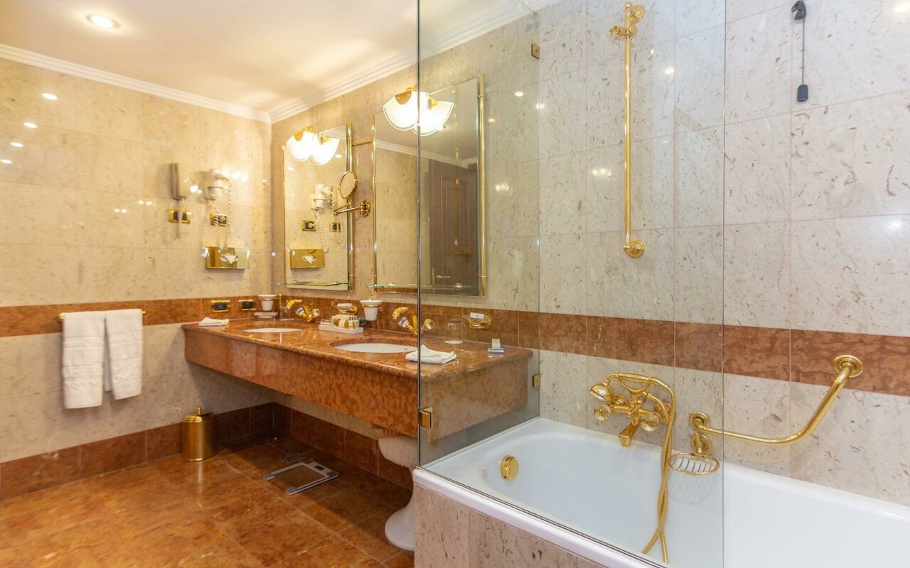- Полный набор ванных принадлежностей (халаты, тапочки, весы, швейный набор, расчёска).