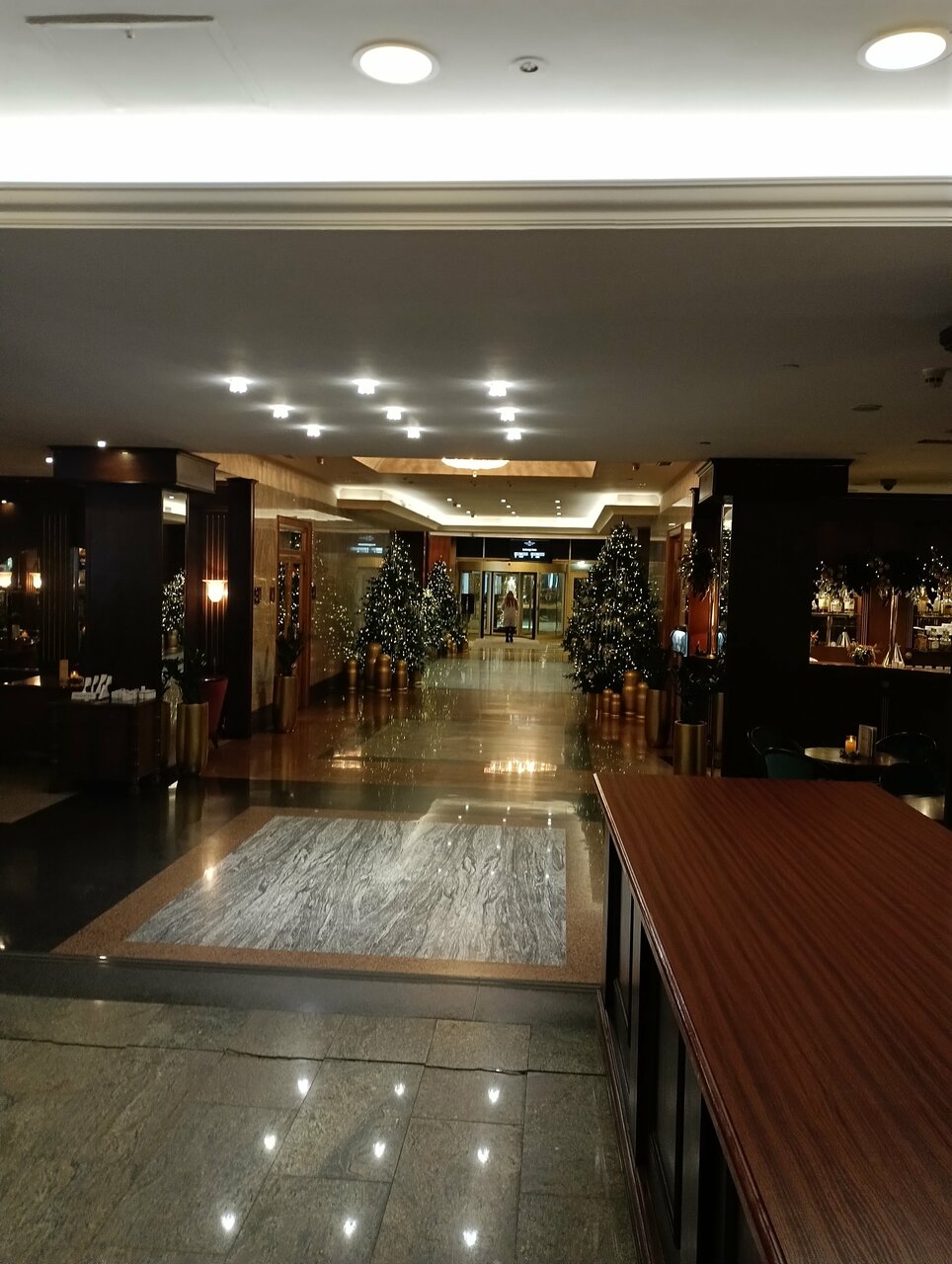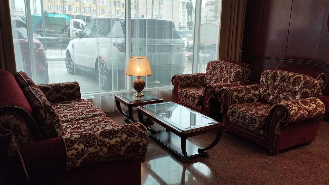 Очень статусная гостиница, внутри выставка дипломов. Очень вежливые швейцары — открывают днем и вечером двери в такси ‘Комфорт+’.