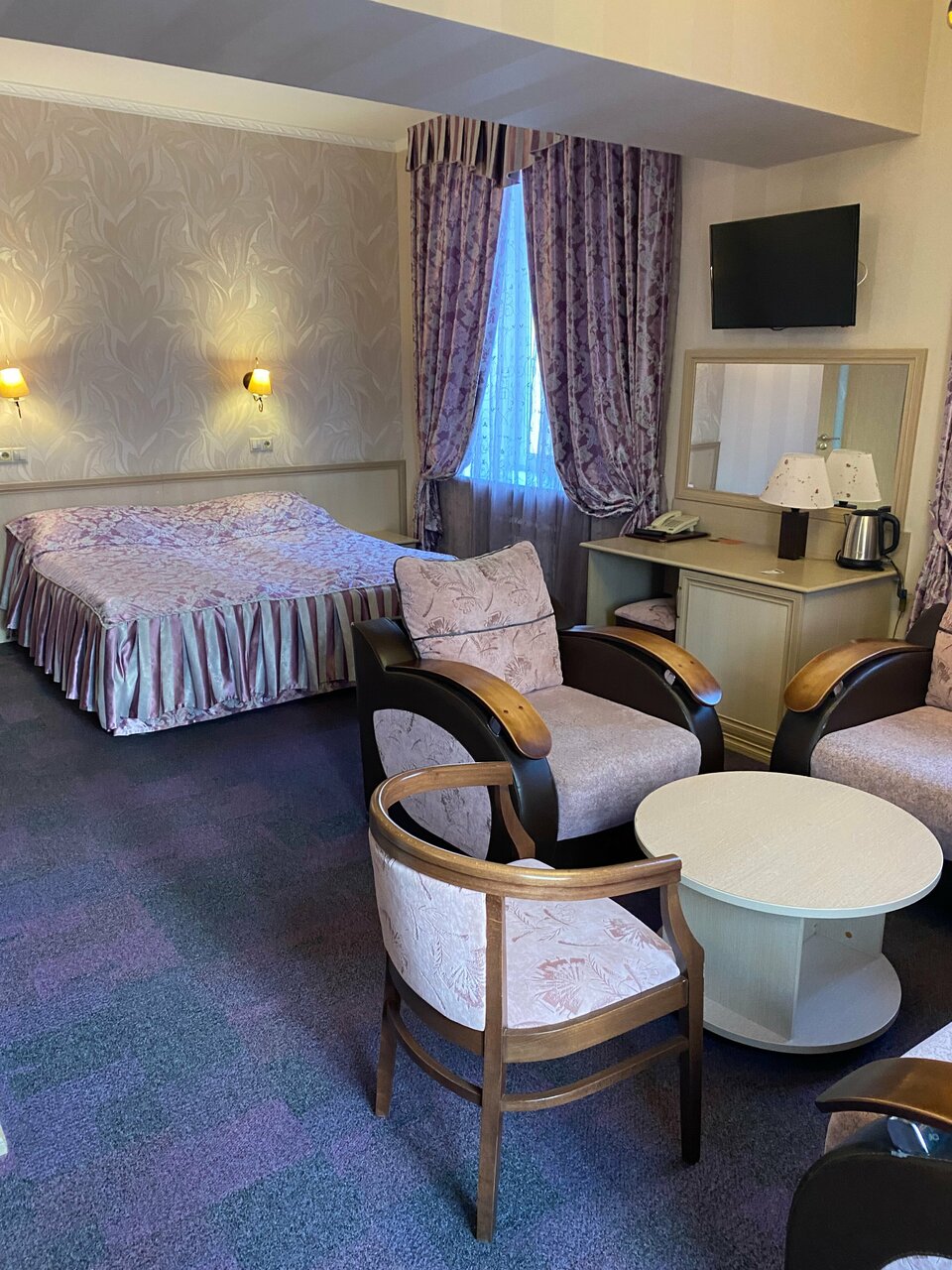 Прекрасный отель, отвечающий всем необходимым требованиям для полноценного отдыха и работы. Очень хороший дизайн, где удобство и комфорт гостей являются основными приоритетами. Отлично обученный персонал. В номере убрались по первому требованию, каждый день чистое полотенца. Были небольшие недочеты , с одной стороны кровати не работал светильник, снимали номер для двоих, а стул только один приходилось сидеть на тумбочке, Очень шумно работает вентиляция в санузле. В целом все понравилось плюсов больше, если будем искать где остановиться приедем в Золотой Колос