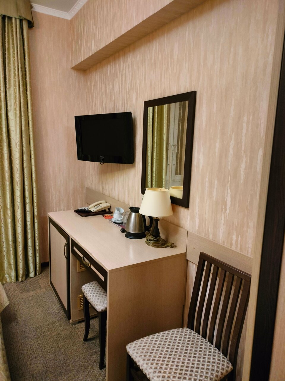 Забронировал номер за месяц. По приезду сразу выдали ключи. Чистый номер. Всё, мебель, сантехника, бытовые приборы, электрика в рабочем состоянии. Жили 6 дней в 401 номере. Показалось — полотенца меняли ежедневно, постельное раз в неделю. Единственная странность — скрипы, шорохи в потолке, при открытом окне (сквозняке). Думаю это материал звукоизоляции плохо закреплён.