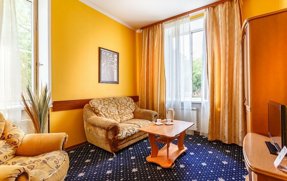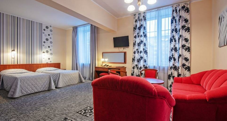 В Наших люксах, выполненных в строгом классическом стиле, бережно сохранённый лепной декор, голландские печи, великолепная люстра.Наши двухкомнатные «люксы» подходят для семейного отдыха с детьми, так как имеют 4 спальных места. Номера оснащены в...