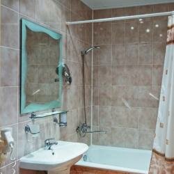 Вполне приличная гостиница. Доброжелательный персонал. Останавливались здесь семьёй на одну ночь. Для ребенка 13 лет раскладушка с деревянными ламелями и матрасиком. Нам -двуспальная кровать. Каждому три полотенца, как положено, тапочки бумажные и набор гелей для душа и шампунь. Ну как везде. Чисто, тепло, уютно. Утром завтрак в местном кафе, на март 24-го цена завтрака 400р. Остановились тут первый раз и при случае остановимся ещё.