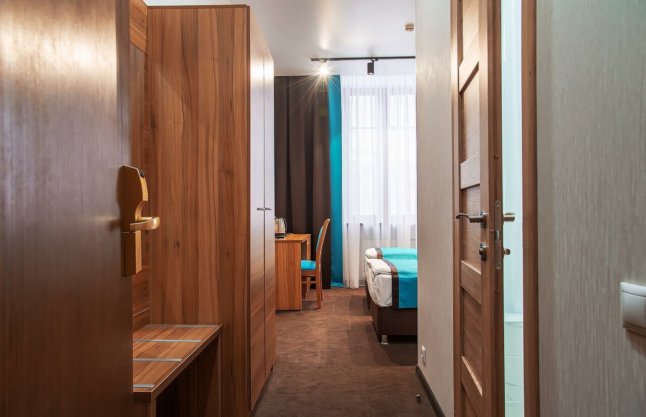 Номер комфортный, хоть и одноместный, но спокойно можно заселяться парой. Порадовало большое количество плечиков для одежды в шкафу и даже есть щётка для одежды. Уборка в номере ежедневная. Единственное в номере нет чая и кофе, а кулер с горячей и холодной водой в коридоре. В целом впечатление хорошее. И действительно очень тихо в номере. Немного потеряли