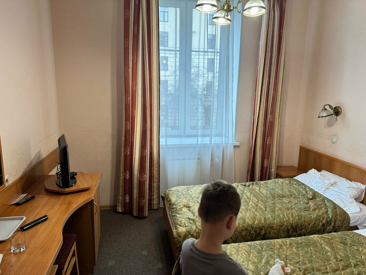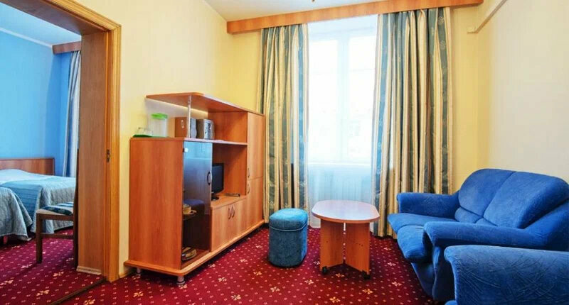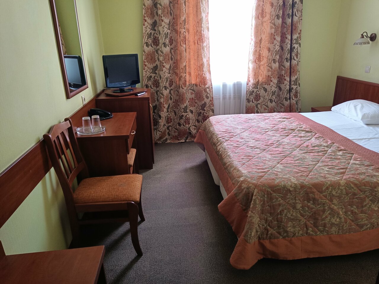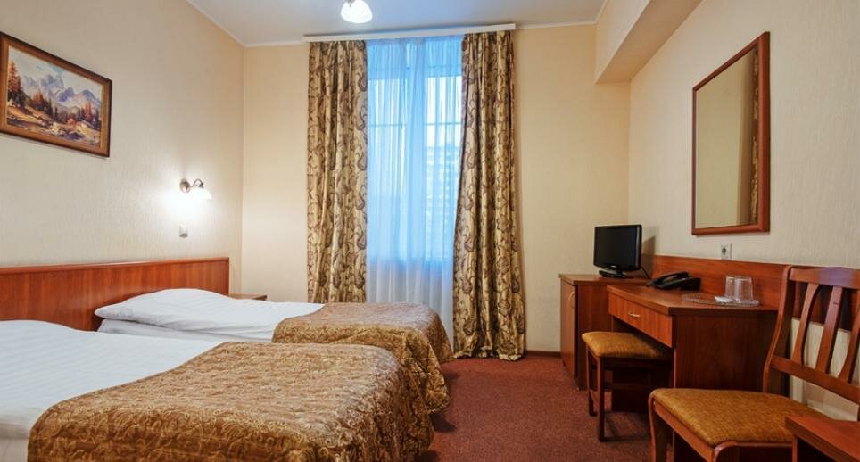 Заселились быстро. Во многих гостиницах нет такого, как поздний выезд. Здесь, пожалуйста, доплатили и до 19:00 номер ваш. Лифт здесь забавный, начинается со второго этажа (мы жили на пятом), зашли нажали на 5, доехали по табло до 4 и встали, оказалось это пятый этаж, также и вниз. Не везде греют змеевики, мы были осенью, так, что это не критично. По просьбе могут принести обогреватель. Окно выходило на проезжую часть, слышно, если какой-нибудь чудак проедет на погремушке. Кулер на этаже, хотелось бы, чтобы вода была чуть ближе к кипятку. В здании есть кафе, можно пройти не выходя на улицу. На завтрак бывает каша, но сладкая, в пору, вместо варенья чай с ней пить.