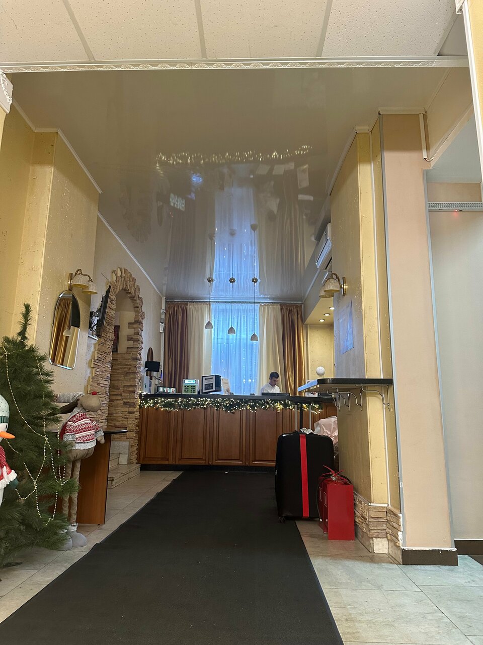 Уютная гостиница. Чистый и комфортный номер. Тихая атмосфера. Приветливый персонал. Вкусные и разнообразные блюда в меню в кафе. Остались довольны