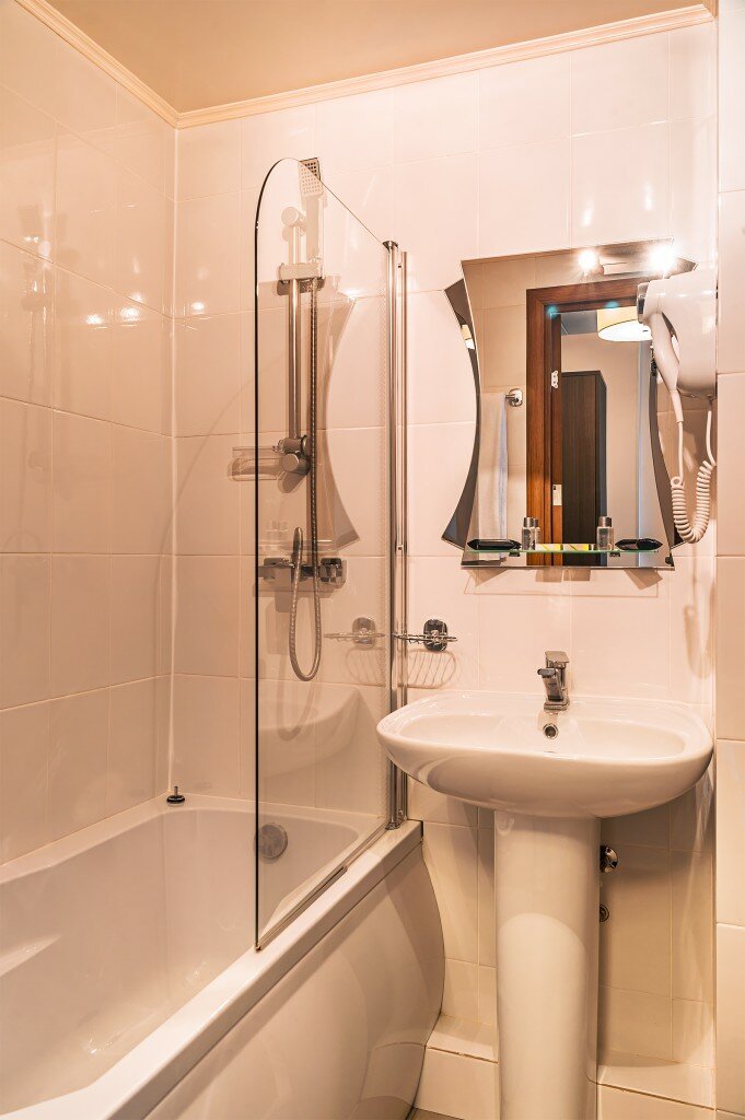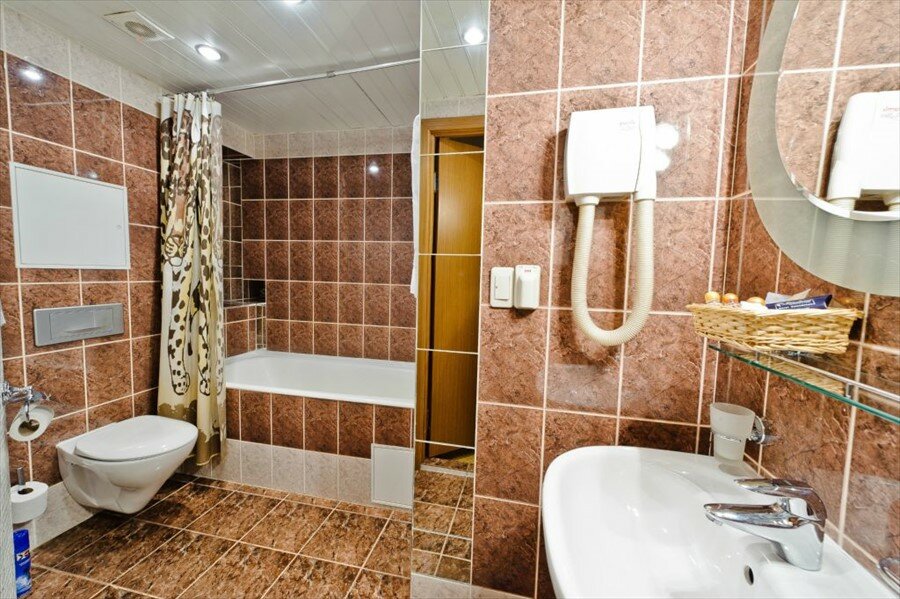 Гостиница когда-то знавала явно лучшие времена, сейчас три звезды с натяжкой. Номер был комфорт. Из комфорта шторы на окне и старенький телевизор. Не было банально тапочек, пол холодный, приходилось ходить в обуви. Сантехника новая, хорошая. Номер чистый, белье и полотенца тоже. На весь номер одна двойная розетка у стола, в которую включены обогреватель и холодильник, если нужно зарядить телефон или включить ноутбук придётся жертвовать либо мороженым либо теплом. Персонал очень вежливый, квалифицированный, было приятно общаться. Завтраки это вообще отдельная история. Уровень столовой отшиба города начала 2000х. Красивый вид из окна на Останкинскую телебашню.