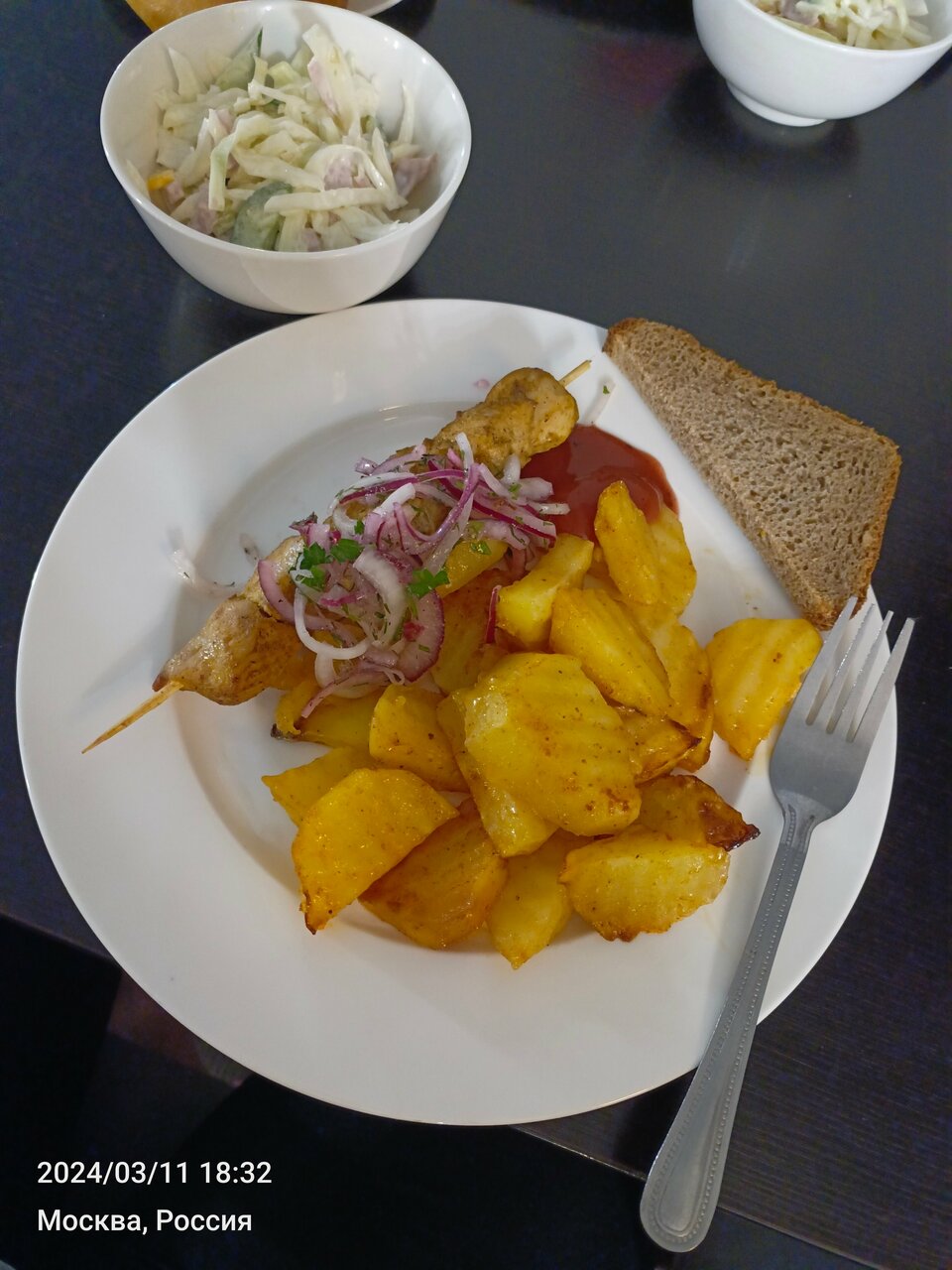 Этот отзыв я буду оставлять исходя от стоимости комплексного обеда (суп, второе+ гарнир, салат, компот, хлоб и булка), его цена 550 руб. В Москве. Помещение столовой чистое, когда мы прибыли на обед было всё подготовлено к нашему приезду, что очень приятно для группы туристов, спасибо персоналу. Подавали блюда по мере того, как мы кушали, что очень удобно, персонал вежливый, работает быстро и комфортно для клиента. Из комплекса мне запомнился кампот с черносливом, было вкусно. Для группы туристов большой и маленькой советую.