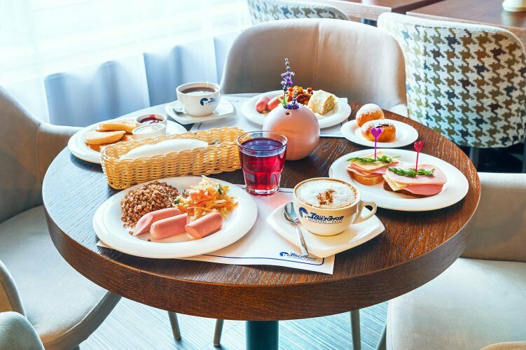 - Вкусные и разнообразные завтраки (шведский стол).; Хороший напор воды.; Удобное расположение (близко к метро, ВДНХ, Останкино).; Бесплатная вода в номере.; Приветливое кафе при гостинице.