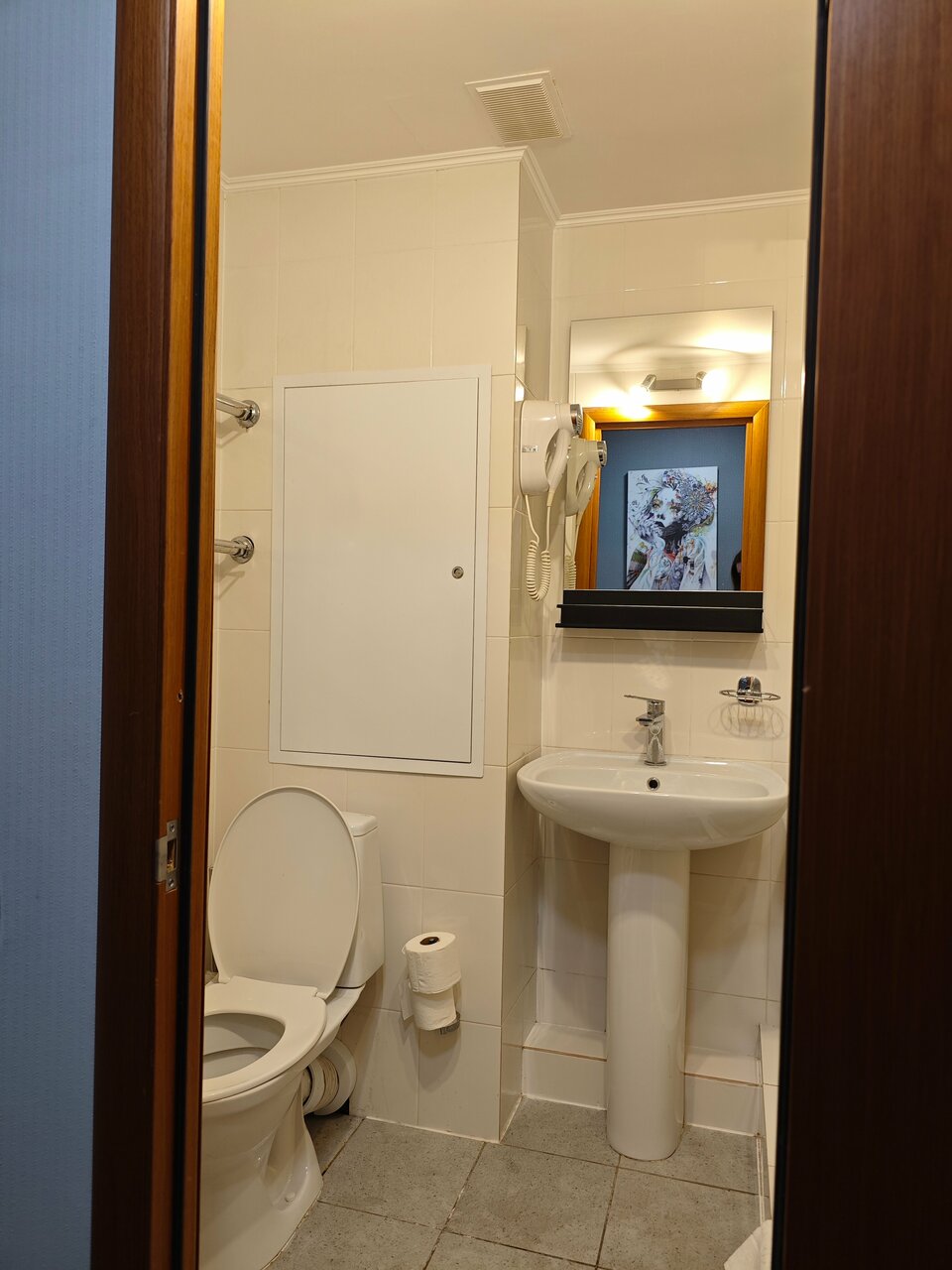 Жили три дня в семейном двухкомнатном номере. Чисто, достаточный набор мебели. Этаж 10, хороший напор воды. Красивый вид из окна на Останкинскую башню. Из минусов: очень шумно, так как рядом дорога. Кондиционер только в одной комнате, окно ночью не открыть, так как просто не заснуть от шума автомобилей, было душно. Завтраки очень хорошие, сытные, вкусные, разнообразные (шведский стол).