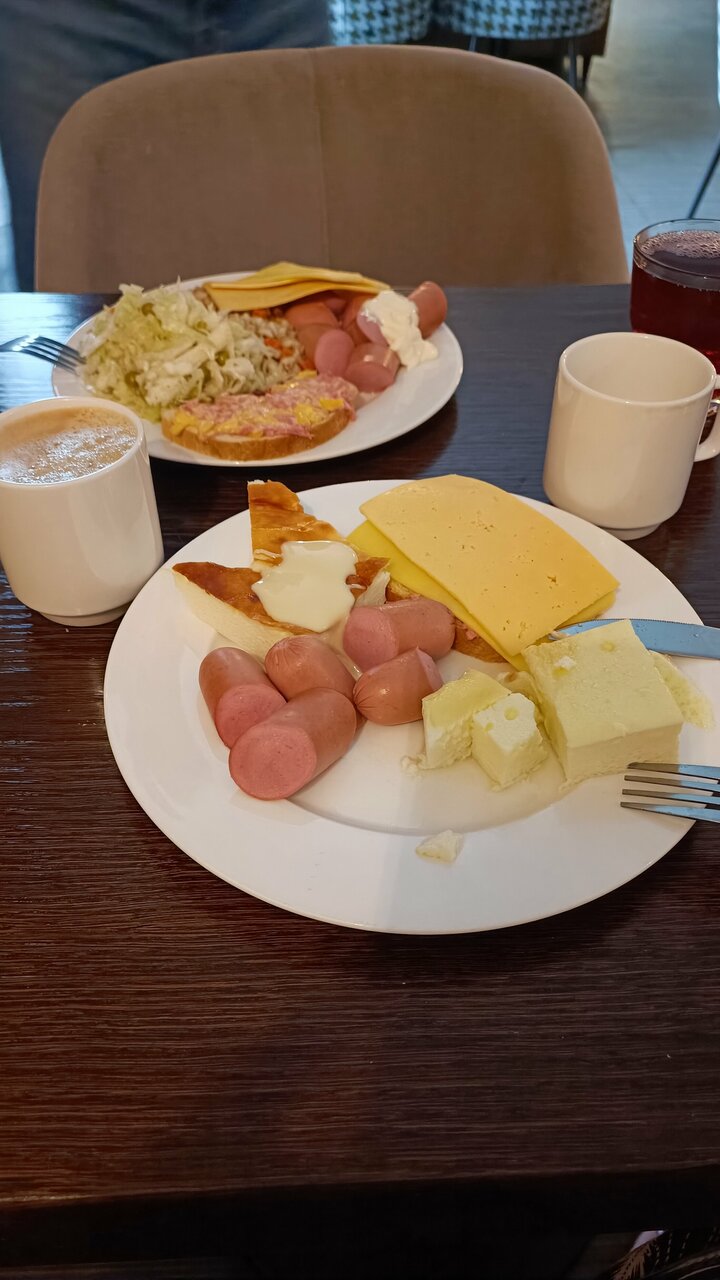 Не понравилось. Из плюсов только хороший вид из окна и расположение. Из минусов — неприятный запах в номере(были в двухкомнатном), тек душ и ожидание лифта утром по десять минут! Это самое неудобное. А гостиница высокоэтажная, пешком не набегаешься. И ужасные завтраки, не припомню таких в других местах… лучше б и не брала. Еда не вкусная, брала хлеб, колбасу, чай, салат овощной, булочку. Невкусно. Народу доя помещения много, приходилось ждать, чтобы сесть, чашки быстро кончились и их долго не выносили. Яиц не былр ни в каком виде. Мальчиков-официантов жалко