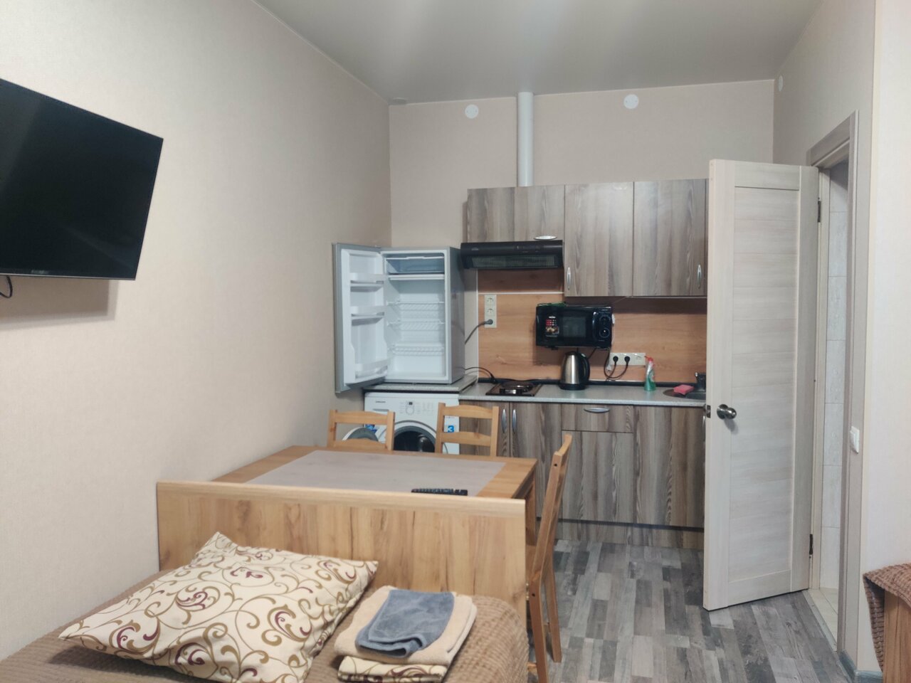 - Наличие необходимой техники (ТВ, холодильник, микроволновка, чайник).