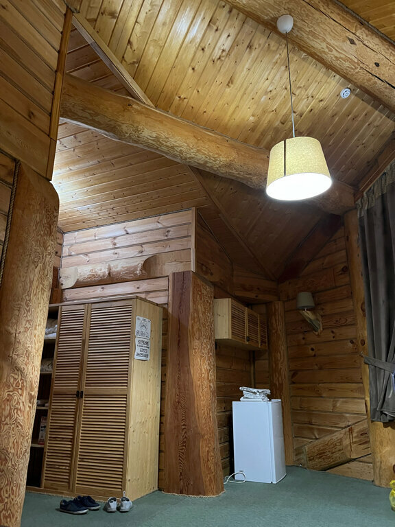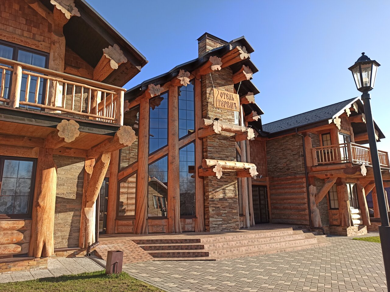 Хорошая гостиница. Вся из сруба. Интересный конструктив. Много места в номере. Пол покрыт ковролином. Отопление хорошее. На улице было — 11, внутри тепло. На 1 этаже есть где погладить я. Завтрак рядом в ресторане. Очень вкусно. Мне очень понравилось проживать в этой гостинице. Февраль 2025.