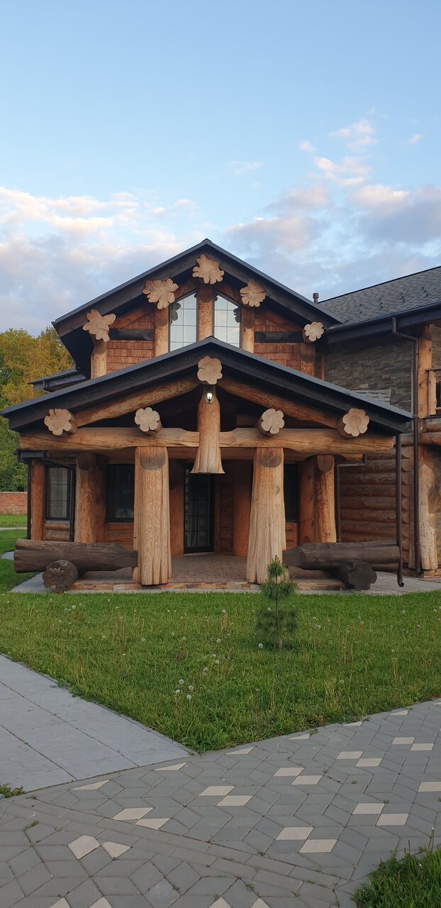 - Красивые деревянные интерьеры (брёвна, узоры).