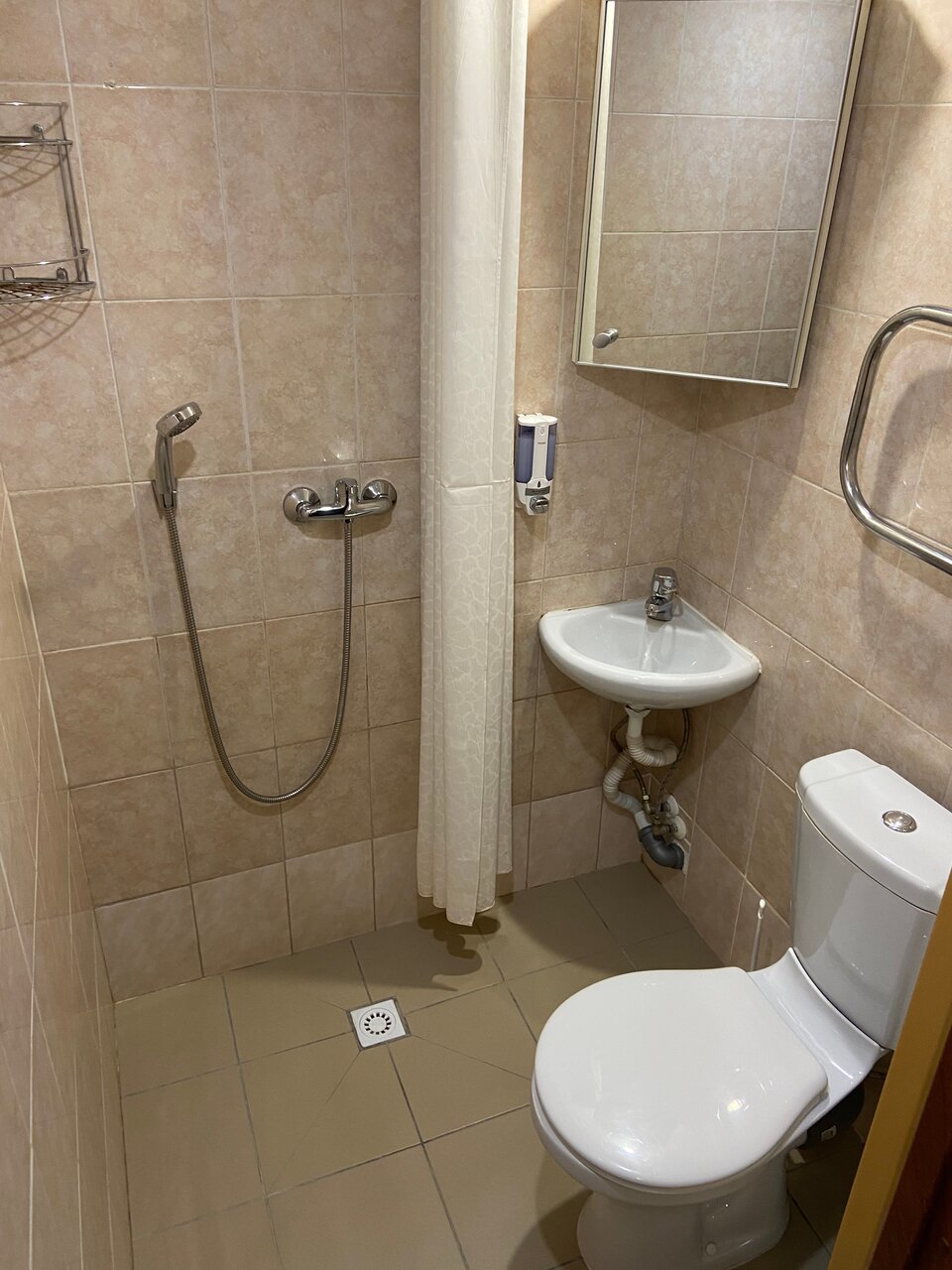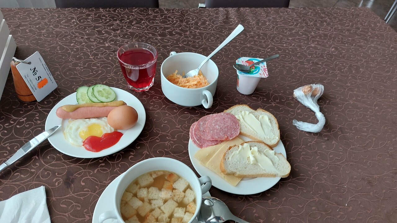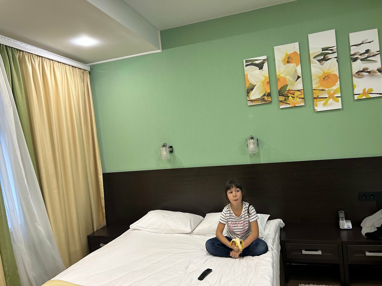 Нормальная гостиница. Ремонт не первой свежести, но в целом все хорошо. Приветливый персонал. Вкусный завтрак -300 с человека. Шведский стол. Брали номер на двоих с раздельными кроватями: матрасы приятные, подушки мягкие, одеяла суперприятные. Не понравилась только ванная, она же туалет. В ней туалет совмещен с душем, после душа очень неудобно пользоваться раковиной. Пол мокрый, вода стекает медленно. Раковина очень маленькая, зубы чистить было неудобно. В остальном место приятное, хоть и далеко от центра. Такси до вокзала обошлось в 350.