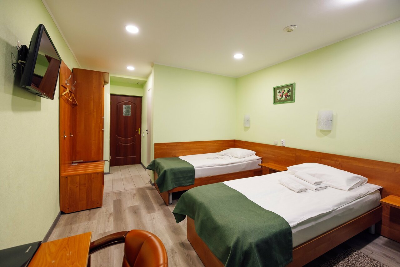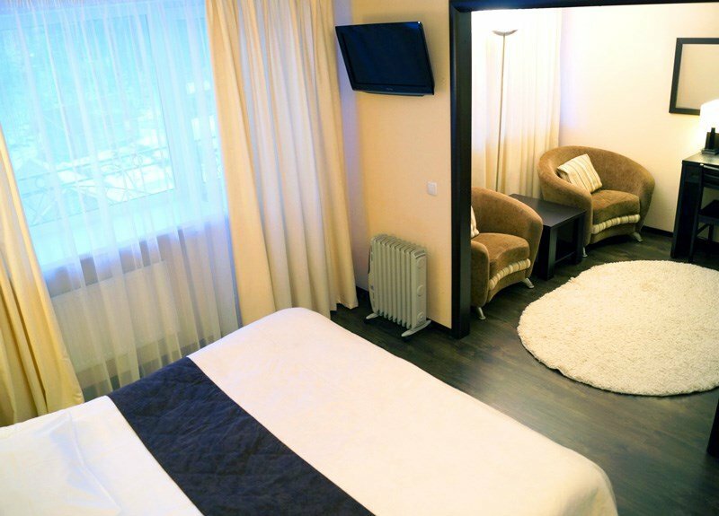 Из плюсов можно отметить сам номер и завтраки (скромный шведский стол). Минус — расположение. От ж/д вокзала ехали на 4 троллейбусе и долго шли пешком. Если Вы хотите жить в центре города, однозначно не вариант. Остановиться на пару ночей можно. Район тихий и зелёный.