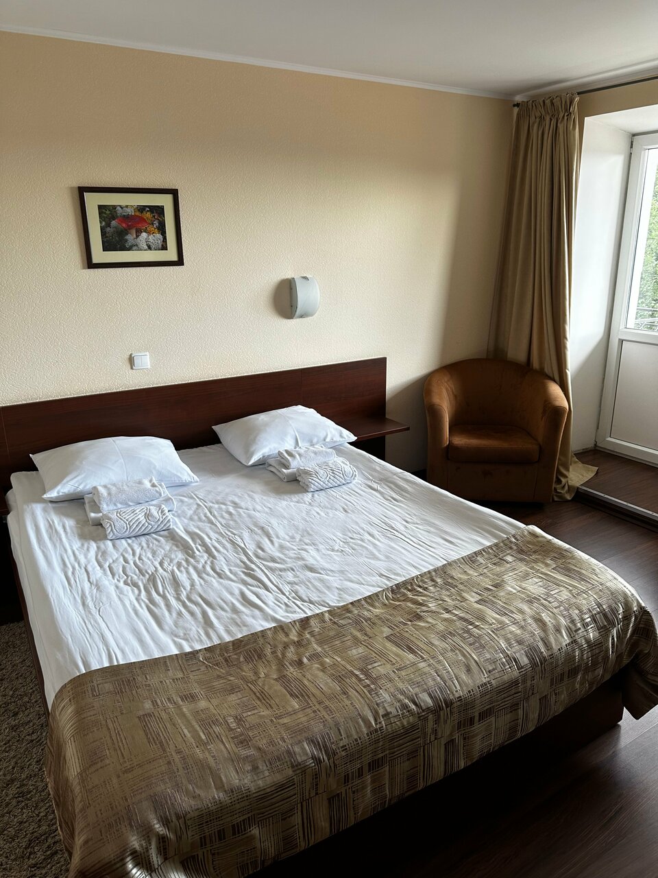 Понятно что гостиница требует ремонта. Но цена очень хорошая. Есть парковка, кафе, шведский стол на завтрак. Все соответствует цене. Переночевать если нужно то самое то!!! Отличный вид из окна, есть балкон с пепельницей)