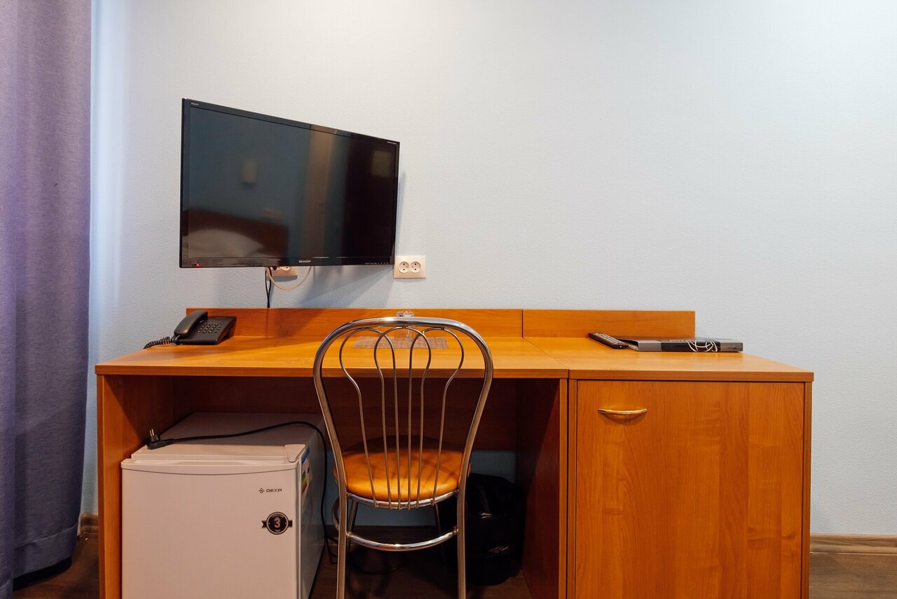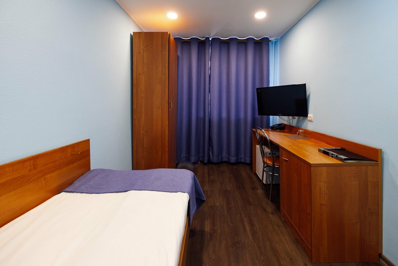 кровать (размер 90*200)рабочий столтумба для одеждытелевизор 32'холодильниккабельное телевидениетелефонпостельное белье из 100% хлопкавешалка багажная с зеркаломсалфетка и рожок для обувиWi-Fi