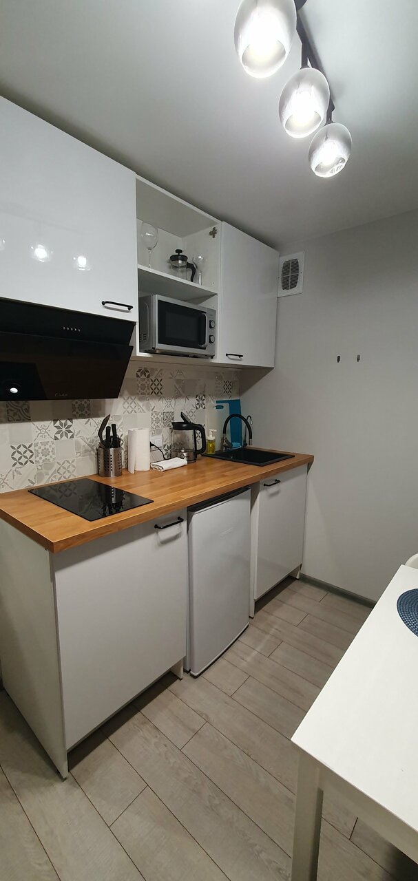 Сами апартаменты отличные, всё чисто и удобно, необходимые принадлежности есть, чай/кофе тоже, за такую стоимость весьма неплохо и комфортабельно. Единственный минус скорее относится не к самим апартаментам, а к дороге во дворе, ей немного плохо)