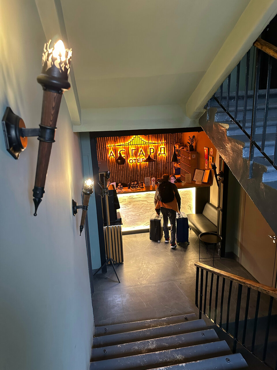 Здание , в котором находится отель, раньше, скорее всего, было общежитием. Ресепшн на первом этаже, сами номера на 4 и 5 этажах. Комнаты, туалеты, душевые и кухня все в отличном состоянии: чистое, новое. Из моих НО: чтобы попасть в душ или туалет, нужно выйти на лестничную площадку и на одной из душевых комнат, где 2 кабинки, нет замка и нет обозначения для девочек или для мальчиков. Но это не критично, т.к. рядом вторая комната с туалетами и душевыми кабинками, с обозначением для девочек. И вот ещё: в первое утро нам было не разобраться с варочной панелью, чтобы приготовить завтрак. Позвали администратора, она посмотрела, сходила кому то позвонила, опять пришла попробовала включить — не получилось и сказала, что ничем помочь не может. Вот он сервис по-русски! Я обалдела! Загугли, нашли, включили. Слышимость хорошая, но когда мы были, только в одну ночь была девушка, которая долго с кем то болтала по телефону и хохотала.