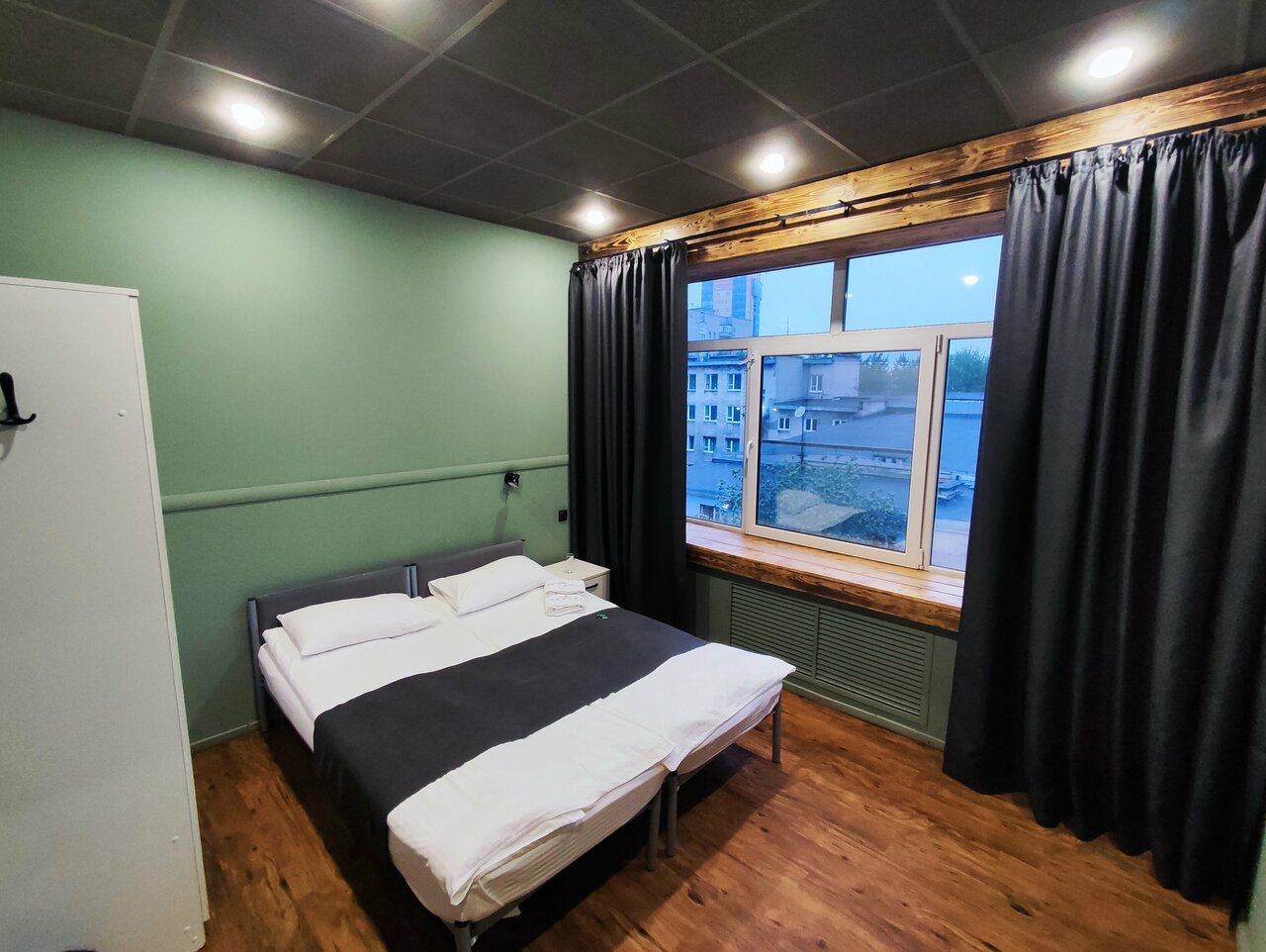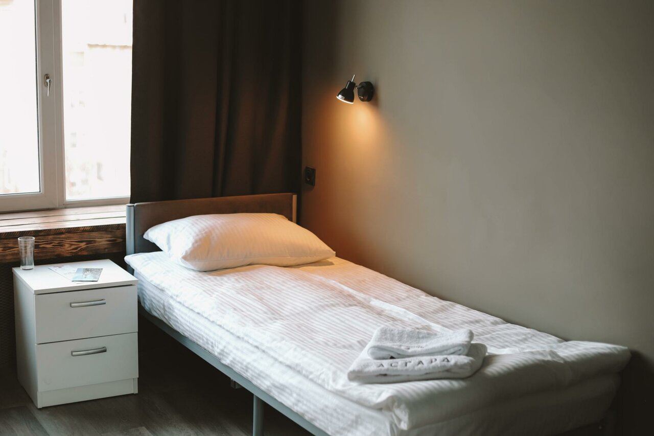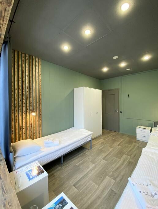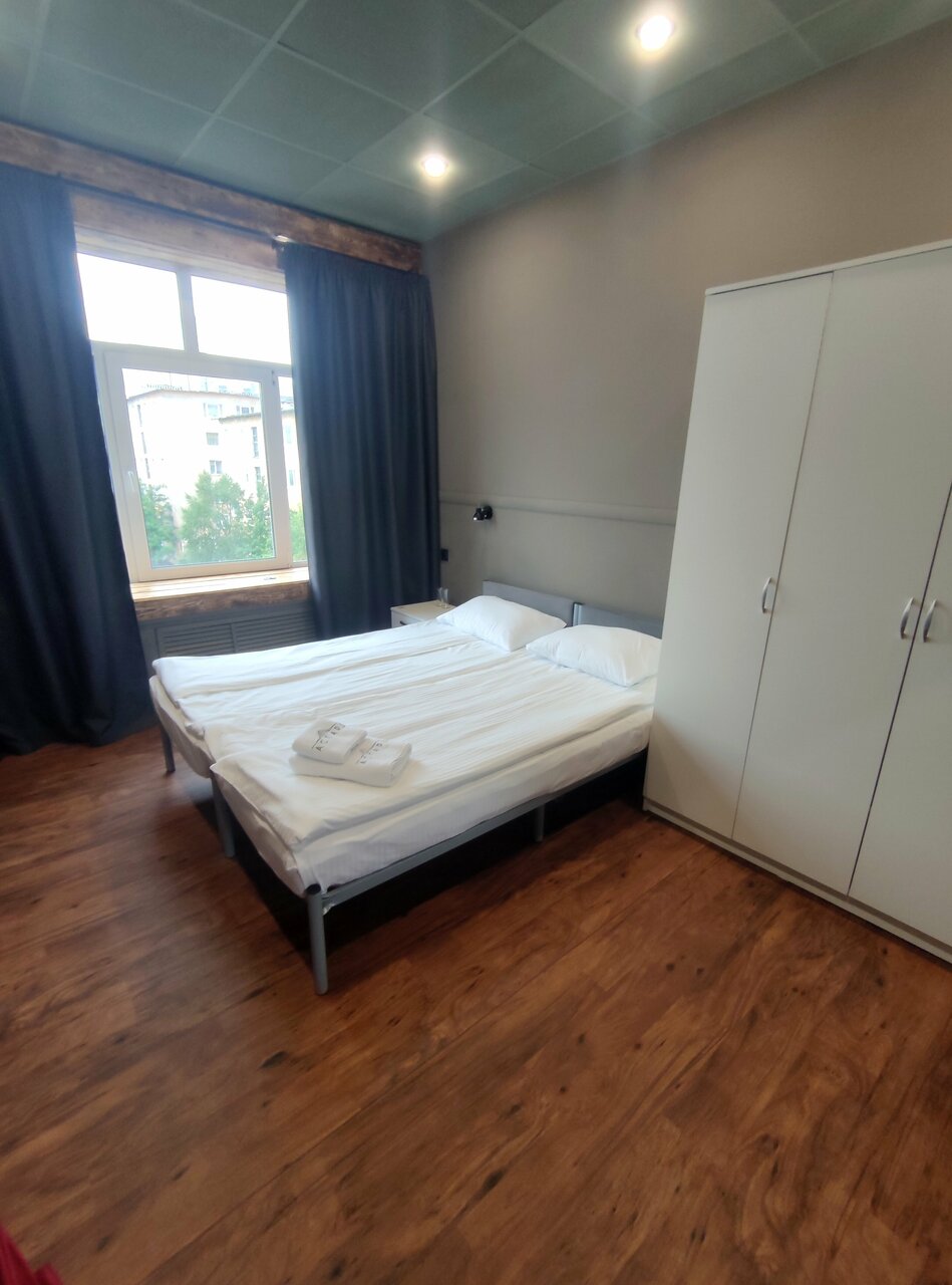 Категорическое несоответствие реальности фотографиям,по факту это бывшие офисы переоборудованные в хостел,стоит яркий запах краски и ремонта,в номере нечем дышать,по фото у вас может сложиться хорошее впечатление,по факту — это коморка 3х3 с двумя грустными кроватями и маленькими матрасами,то что выдают за двухспальные большие кровати — соединенные односпалки,категорически не советую это место.