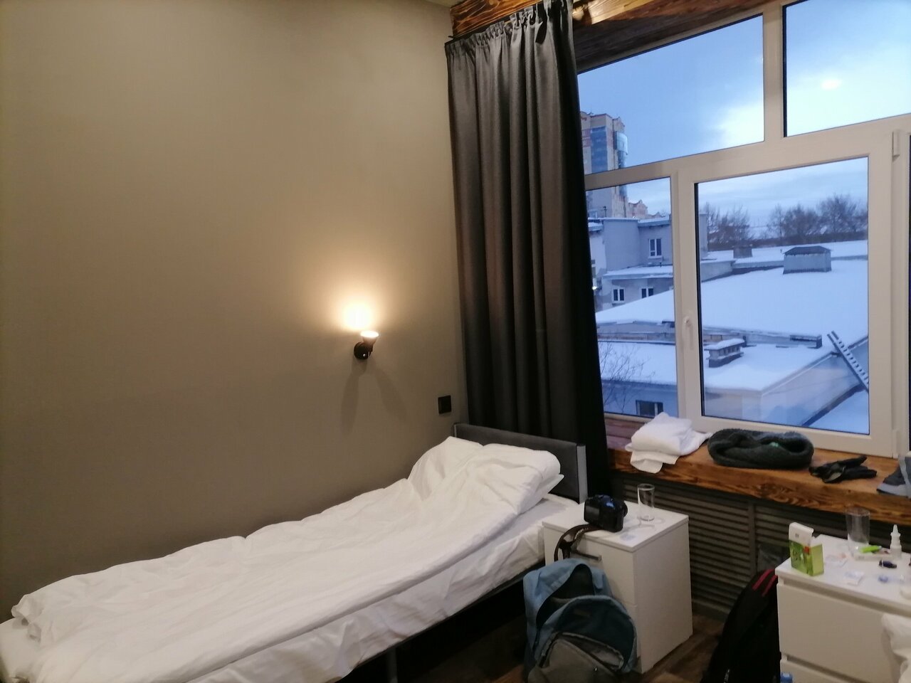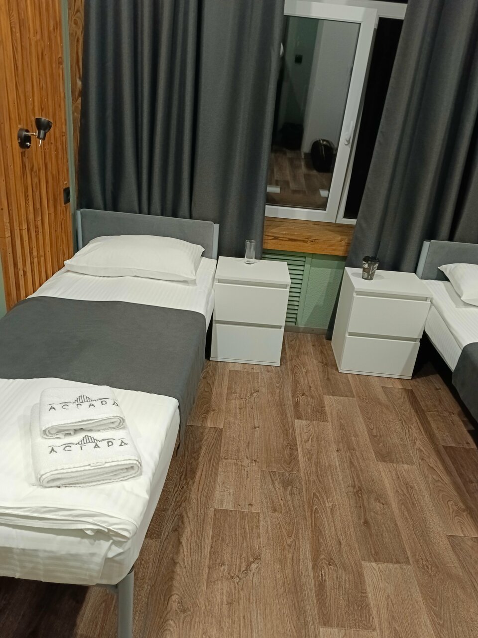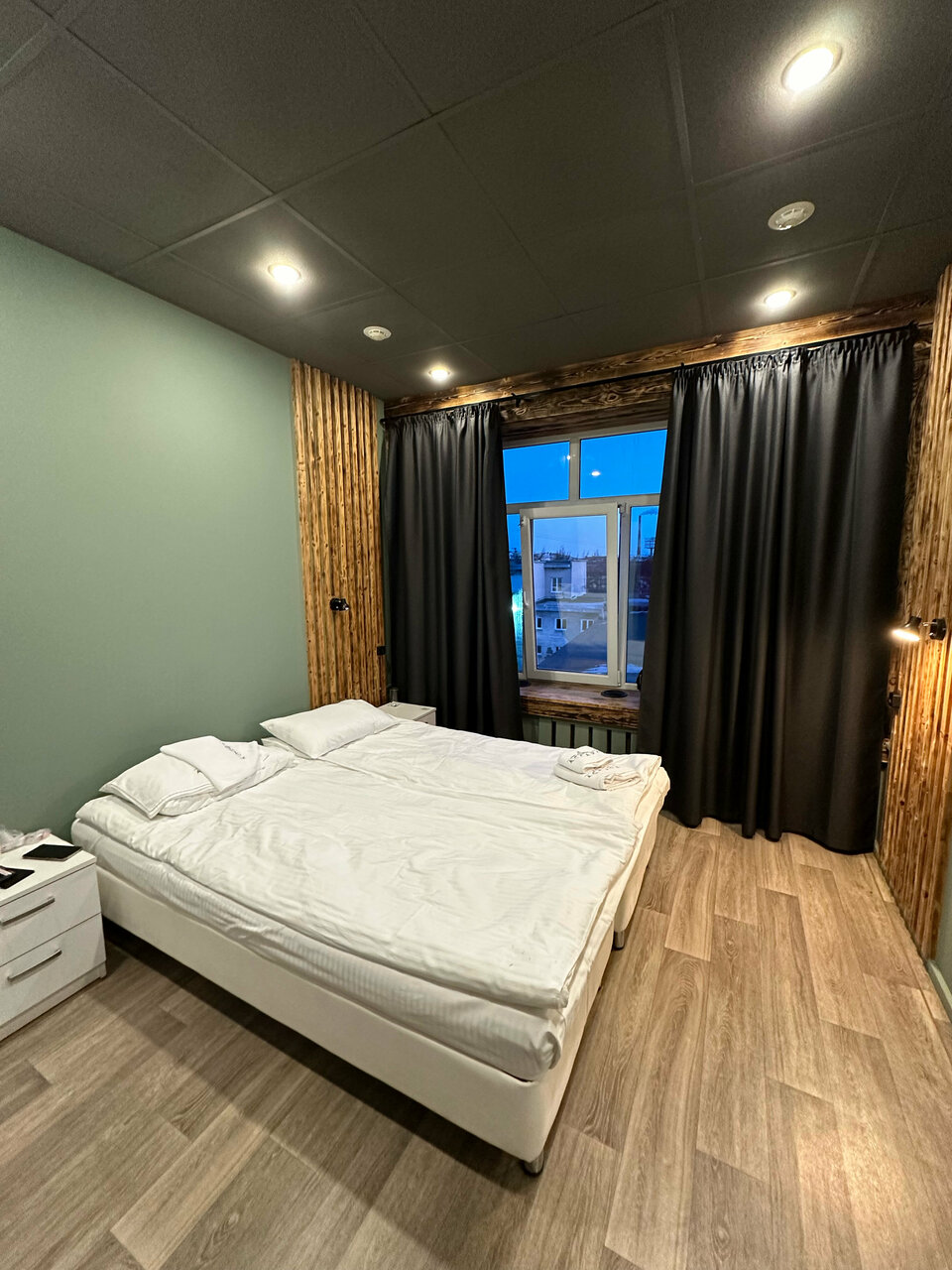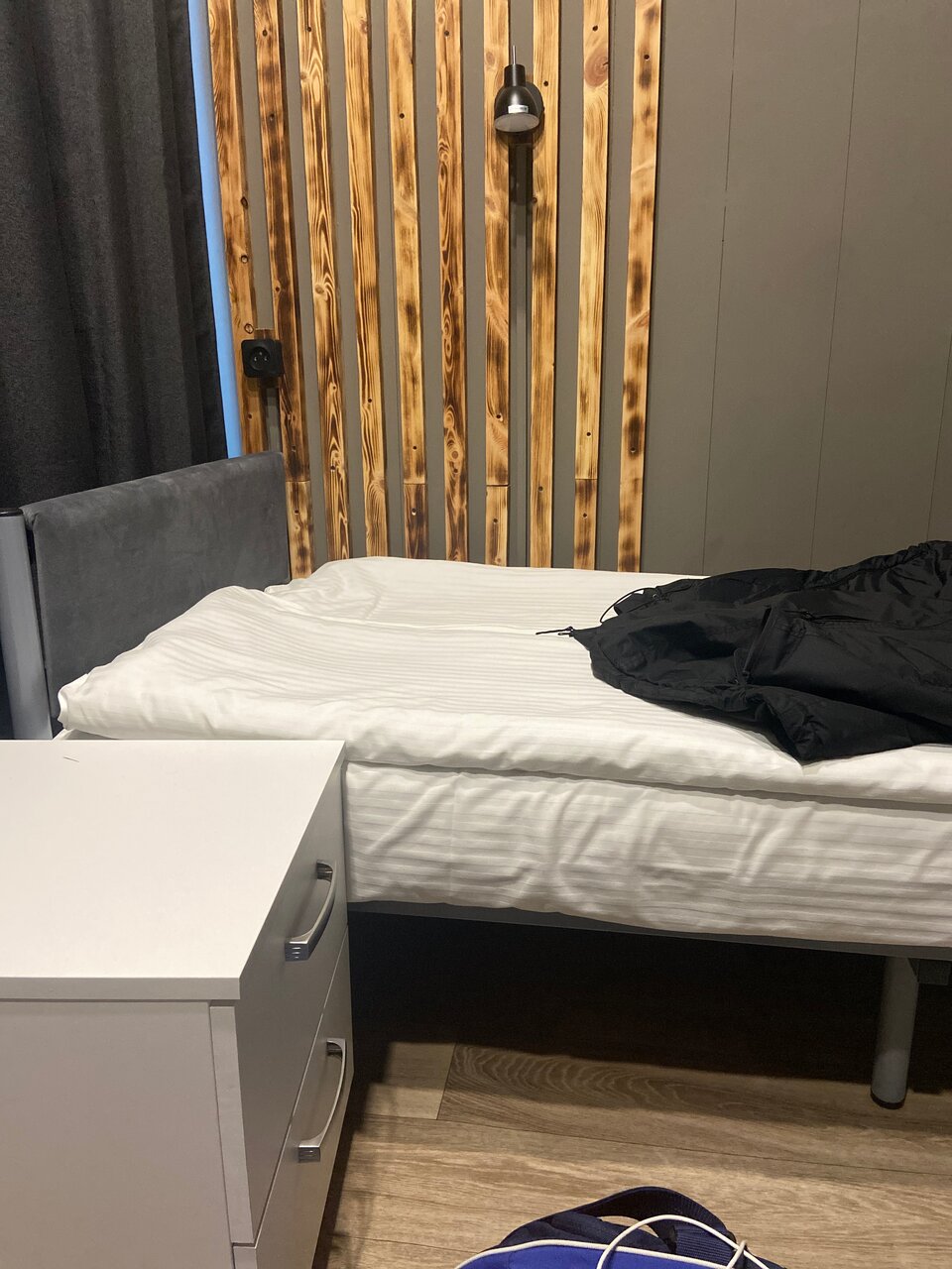 Категорическое несоответствие реальности фотографиям,по факту это бывшие офисы переоборудованные в хостел,стоит яркий запах краски и ремонта,в номере нечем дышать,по фото у вас может сложиться хорошее впечатление,по факту — это коморка 3х3 с двумя грустными кроватями и маленькими матрасами,то что выдают за двухспальные большие кровати — соединенные односпалки,категорически не советую это место.