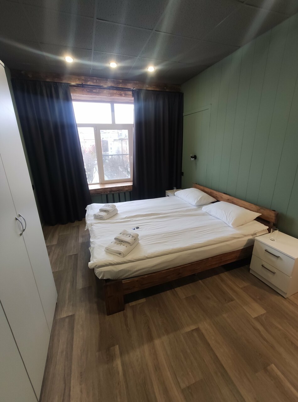 Отель понравился. Расположение недалеко от жд вокзала. На кухне была вся необходимая утварь. Номера и санузлы были чистые и с хорошим ремонтом. Один из треков, играющих в туалете, стал саундтреком поездки и будет мне напоминать о Мурманске. Особенно хотелось бы отметить профессионализм администратора Тимофея и поблагодарить его за оказанную помощь в ситуации, которая выходила за пределы его обязанностей.