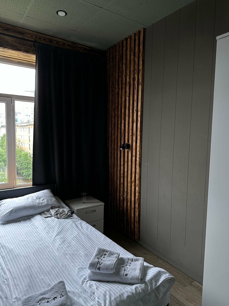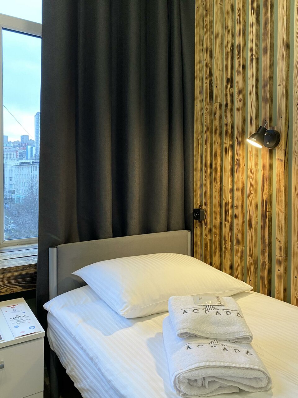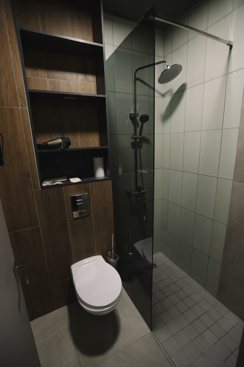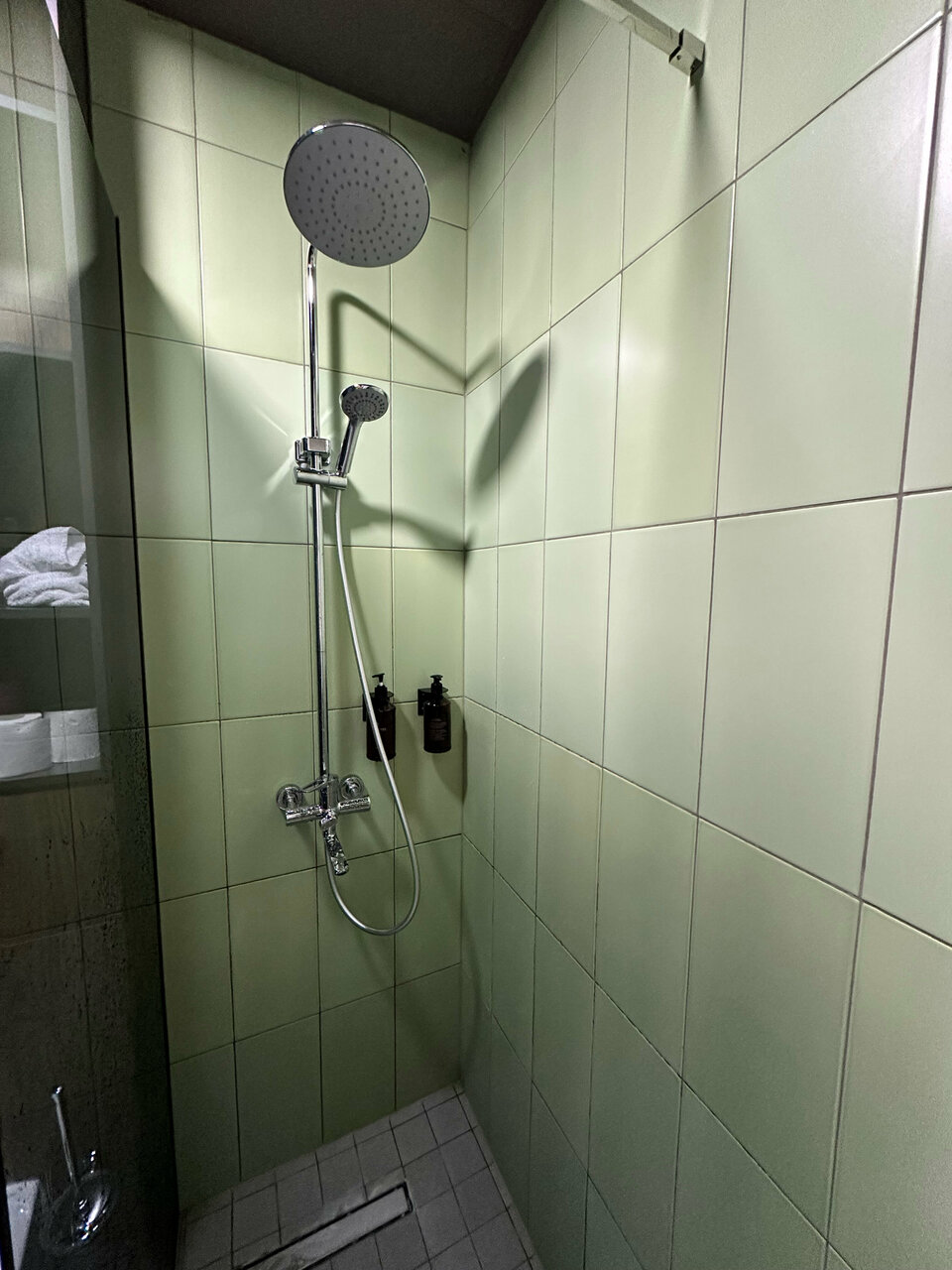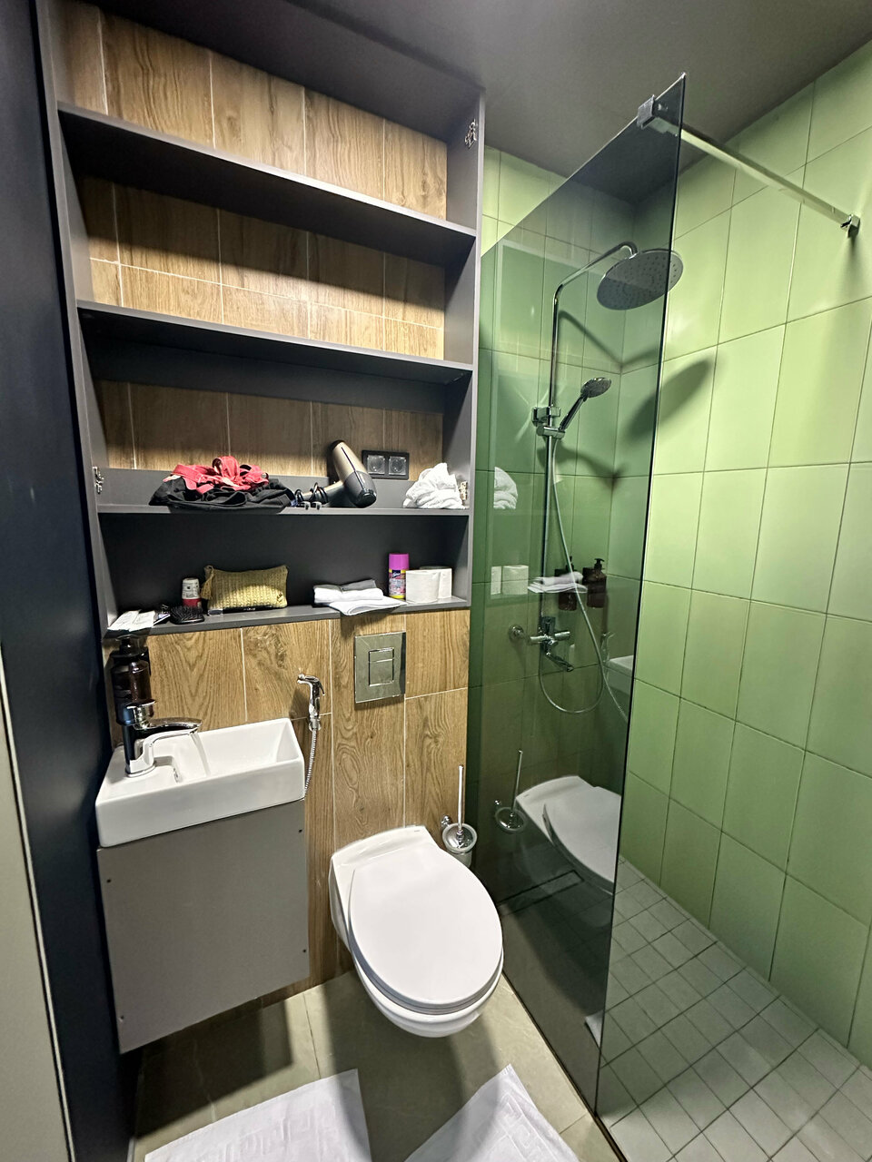 Ребята, основная задача отеля — это отдохнуть и выспаться. Но тут стены сделаны как будто из бумаги. Коридор и соседей слышно, как будто стен нет вообще. Делать отель с такой звукоизоляцией — это просто неуважение к своим клиентам! Туалет и душ на другом этаже бизнес-центра — вы серьезно? Туалет как в ТЦ, душ как бассейне, неуютно, неудобно. +1 звезда за дизайн, и за, в принципе, неплохой номер. Если вы хотите, чтобы все вокруг вас слышали — отличный вариант. Если хотите достойный отель, ищите другие места