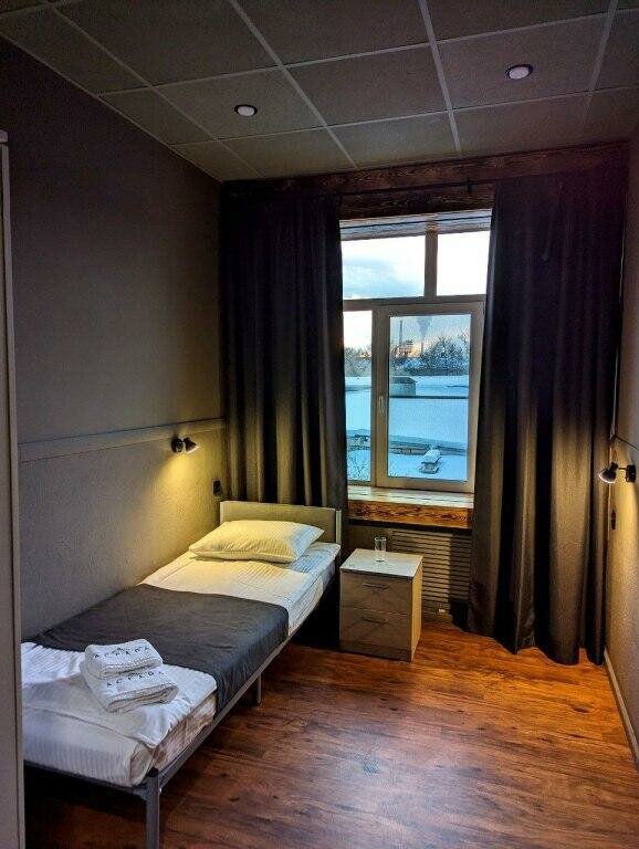 Отель в центре Мурманска. Санузел — ОБЩИЙ. Номера находятся на 3 и 4 этаже, если тяжелый багаж — это очень не удобно. Лифта нет. Розетки расшатаны, ручки дверей грязные. Слышимость большая, шумоизоляции нет. В августе в комнате было прохладно, отопителя нет. Санузел чистый, качественная сантехника. Есть общая кухня с холодильником, плиткой, микроволновкой и пр. Отель в центре города. Цена завышена.