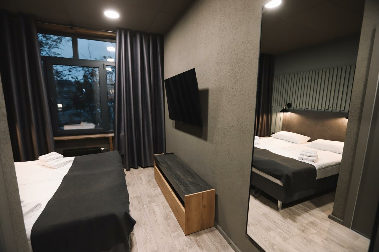 Мини кухня в номере, площадь 15 м², 2 кровать 80*200 см, душ, фен, ЖК-телевизор, бесплатный Wi-fi, кондиционер в номере. В отеле действует бесконтактное заселение по коду доступа в номер и с онлайн-регистрацией.