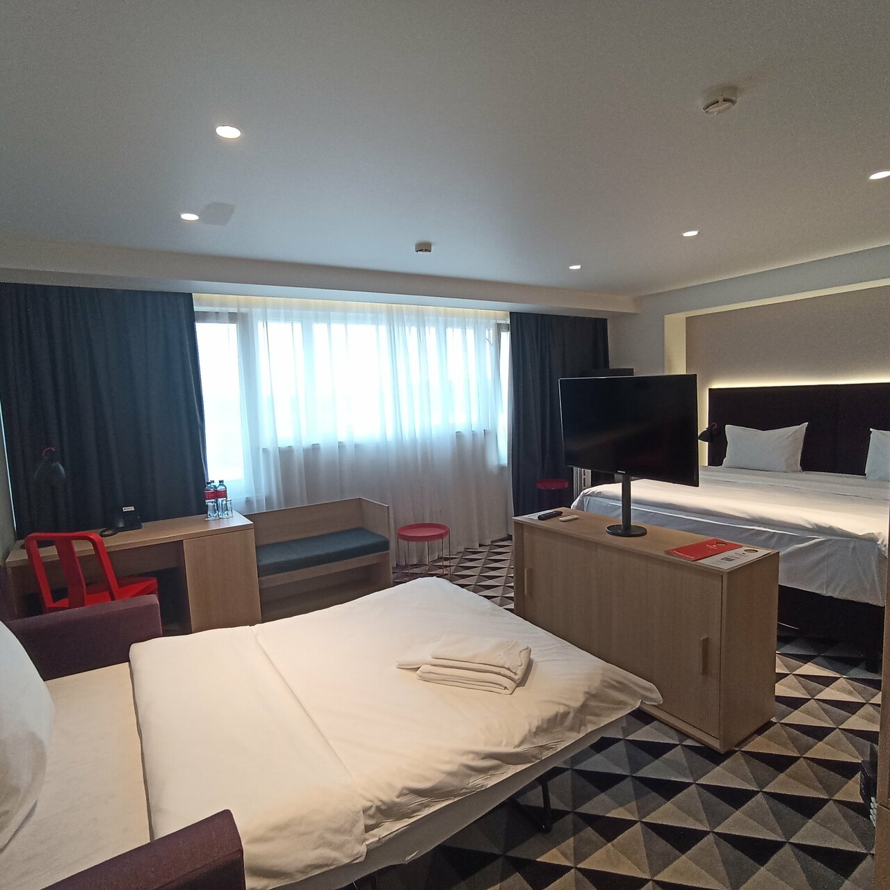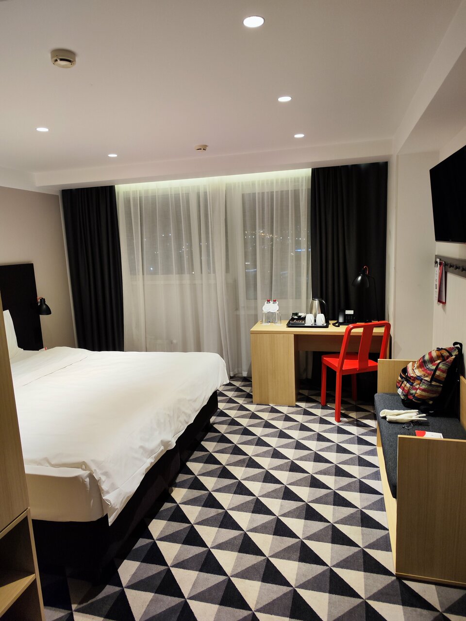 Супер! Соотношение цена качество. Приятное белье постельное. Прмветственные чай кофе вода в номере это волшебство для изсученных путнмков расположение. А высота над городом все видно. Мы влюбились в этлт отель. Просто и все по делу На первом этаже турцентр. Можно оформить паспорт полярника