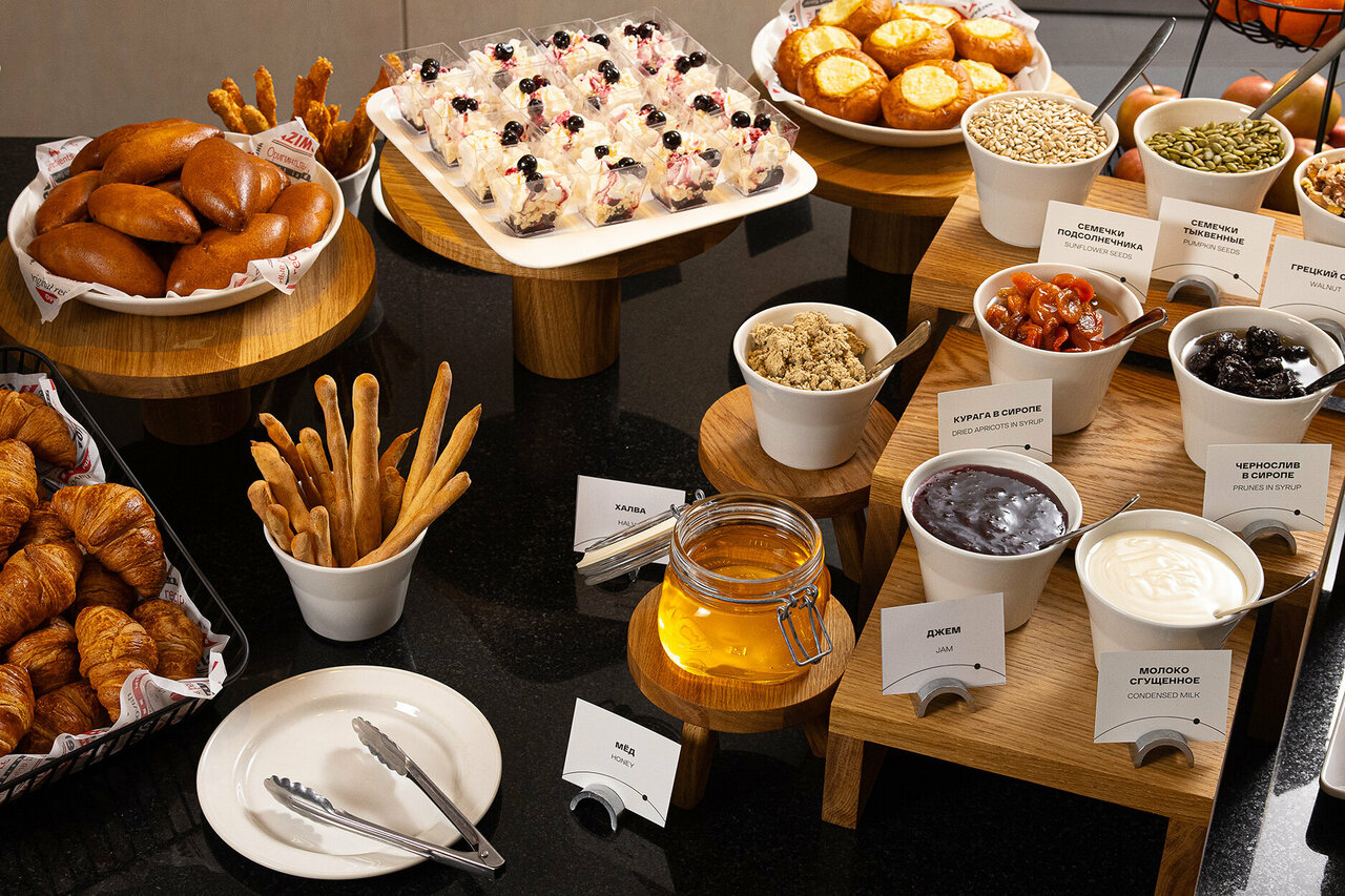Уютное DELI Café расположено на 1 этаже отеля. Богатый выбор фирменной ароматной выпечки, десертов, сэндвичей и свежевыжатых соков, уникальный авторский дизайн интерьера. Часы работы: будни 8:00-22:00, выходные 10:00-22:00, завтраки 8:00-12:00.