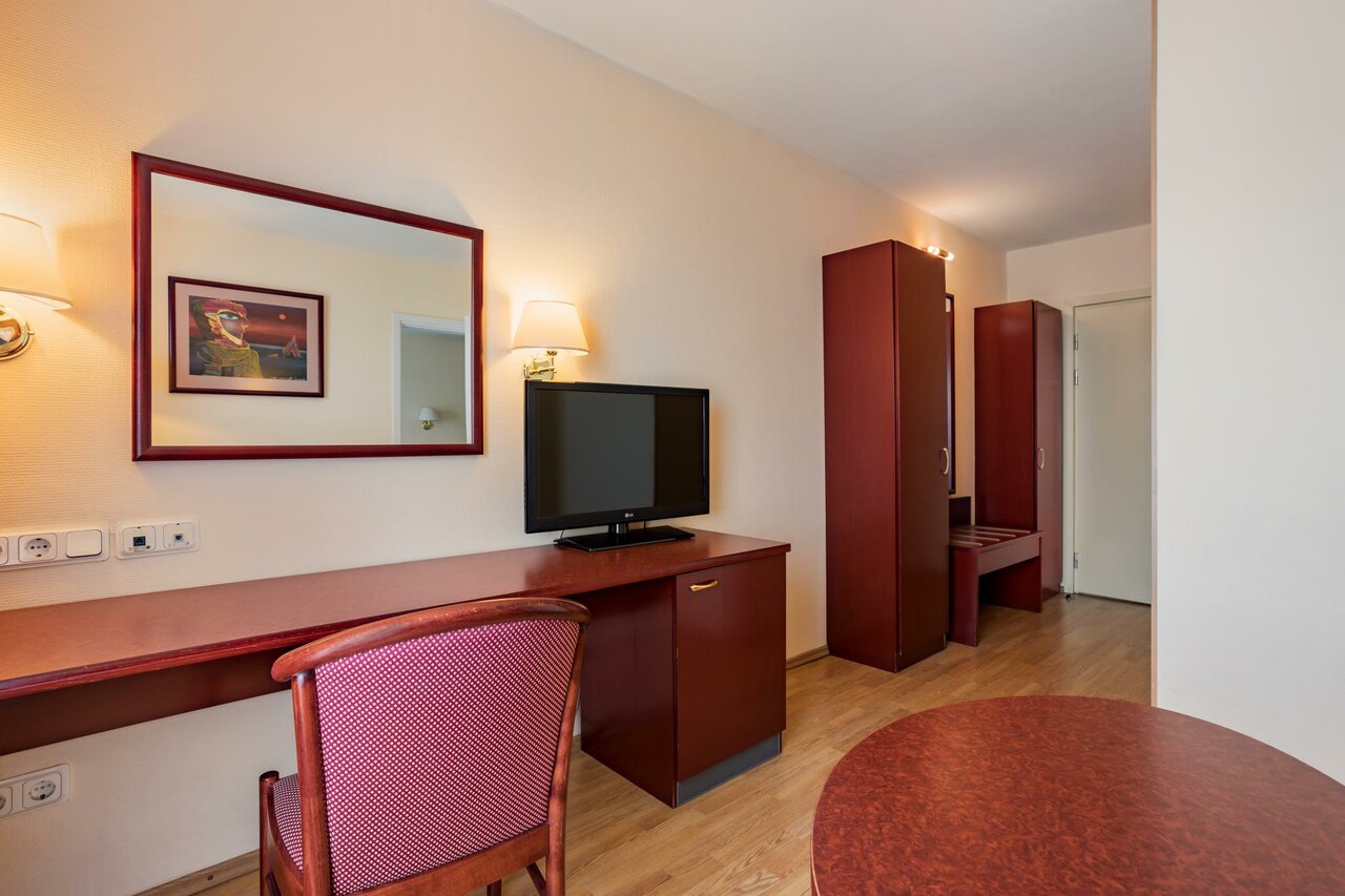 Хорошие номера, большой телевизор, есть холодильник. Тепло, хороший шведский стол. Из недостатков , только отсутствие шкафа для вещей, но при этом есть хорошие вешалки.