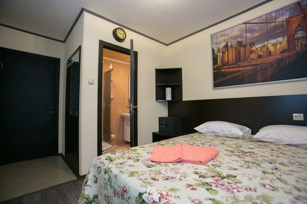 Мини отель, номера чистые, удобства в номерах, а не на этаже, как у многих. С парковкой проблем нет. Цены средние.