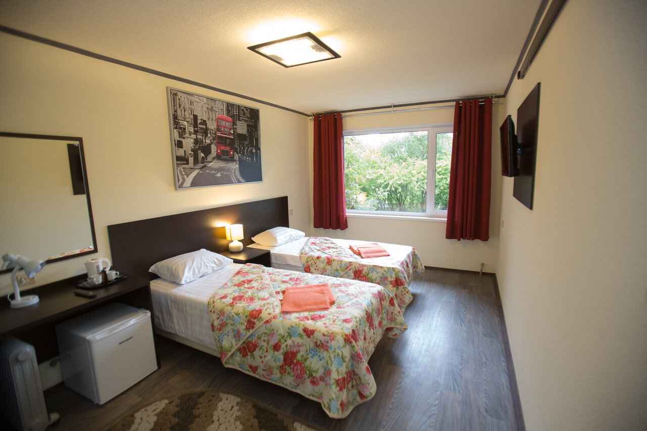 Трехместный номер с раздельными кроватями. Идеально подойдет для командировок. Максимальное размещение 3 человека