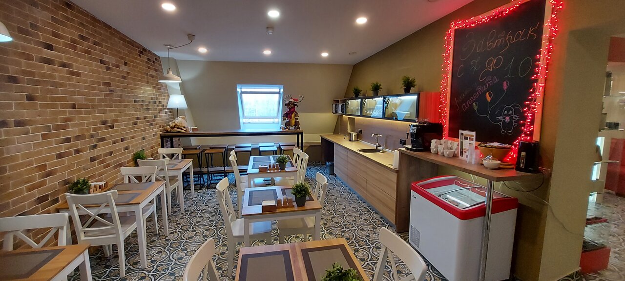 Номера хорошие. Общественное пространство для завтраков и чая просто прекрасно! Завтрак средненький – размороженные блинчики из полуфабрикатов, сосиски, вареные яйца, колбаса.