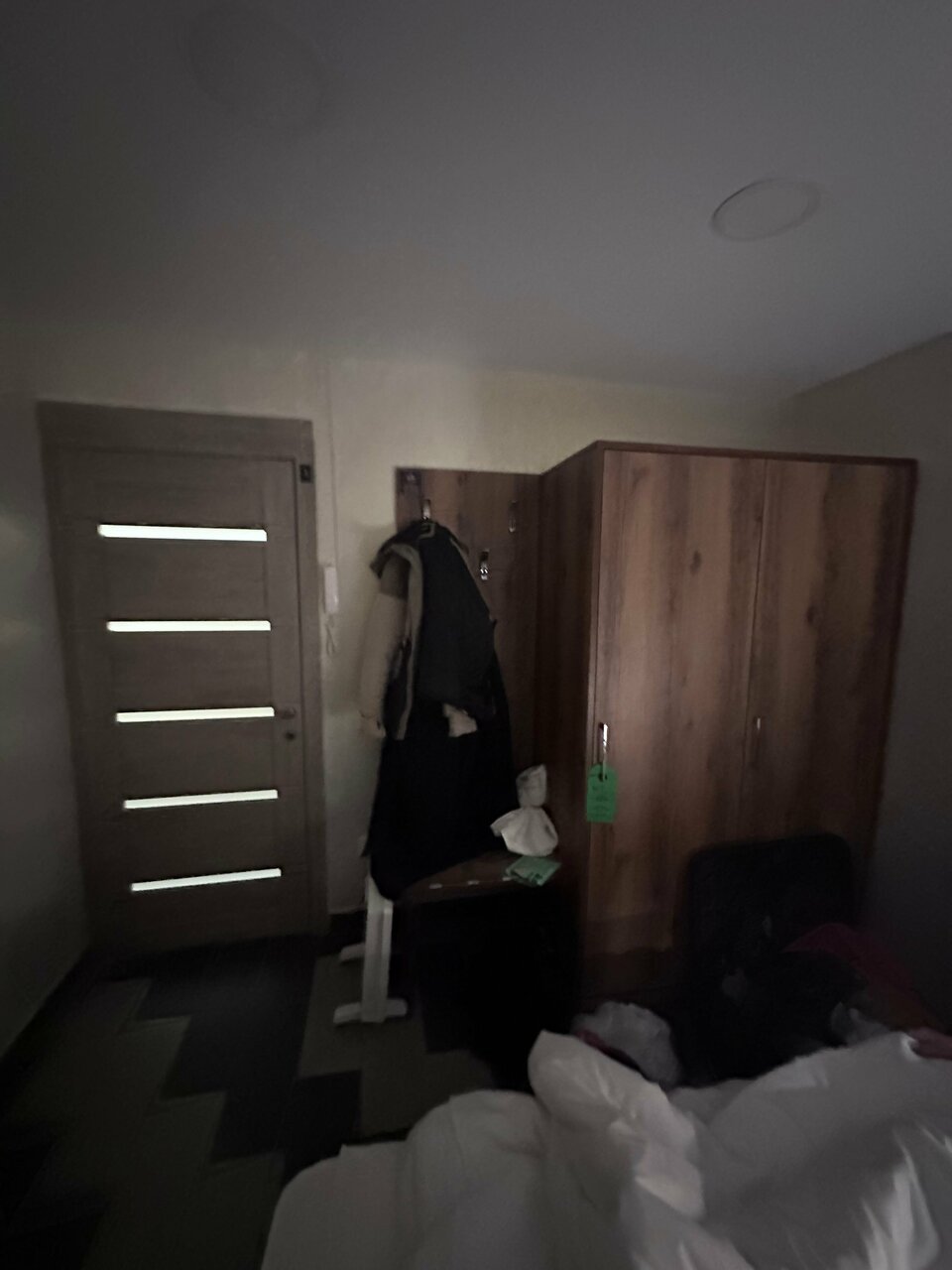Отель свежий с приятным ремонтом и запахом. Ванная хоть и общая, но просторная, чистая и не противная. Есть большое зеркало и несколько мощных фенов. Также имеется классная кухня со всем необходимым и прачечная. В номере есть шкаф, вешалка, 2 кресла, стол, а также большой современный телевизор. В общем остались довольны, что даже продлевали номер.