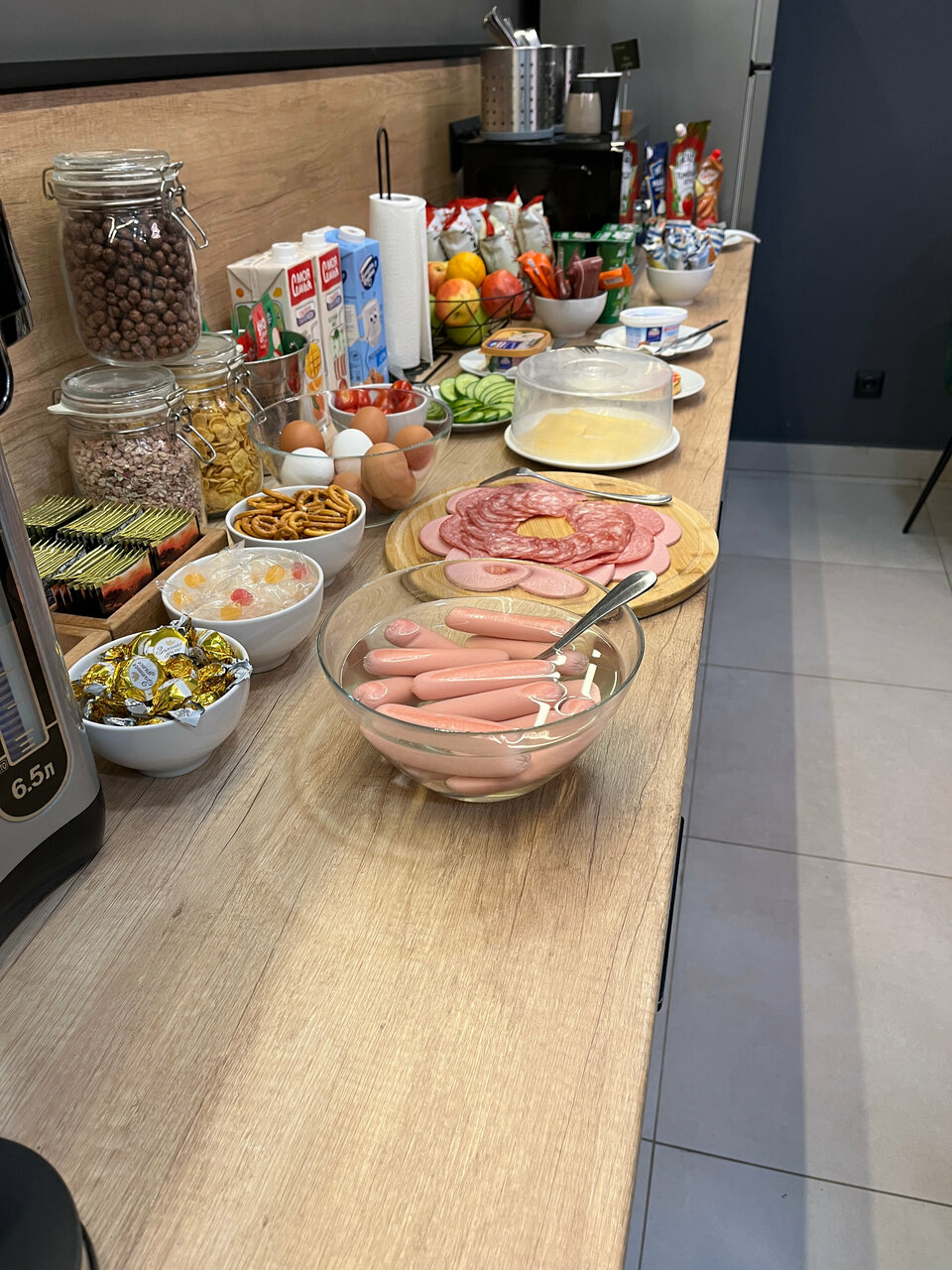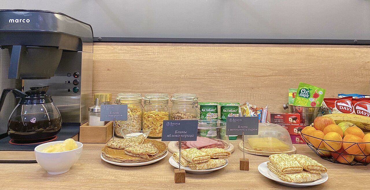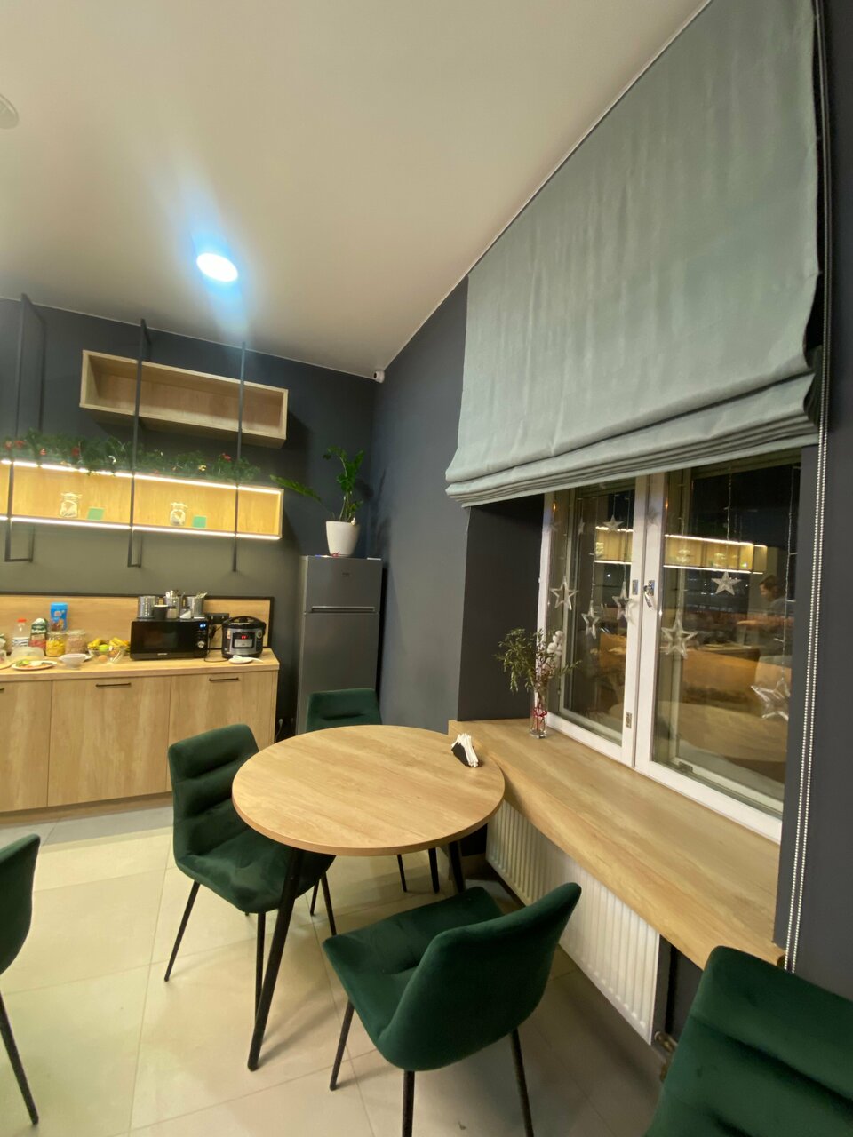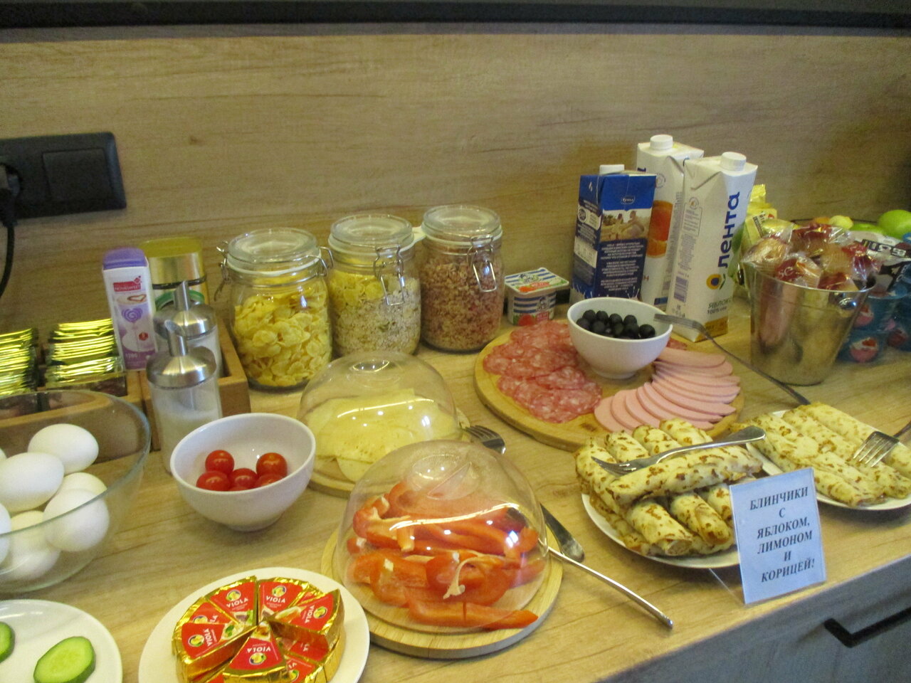 Небольшой уютный отель на 1 этаже. Все новое, приятное. Номера большие, комфортные. Есть общая зона кухни, где проводятся завтраки, там же общий холодильник. Завтраки в большей части — бутерброды, разогретые блины + каша из мультиварки и разные йогурты, фрукты, сырки. Очень приятный персонал, чувствуешь, что тебе рады)) Из минусов — первый этаж, люди прямо под окнами ходят. Это исправляется ставнями (они также полезны при светлой ночи). Но при их использовании приходится включать кондиционер (мы были в нехарактерную для Мурманска жару).